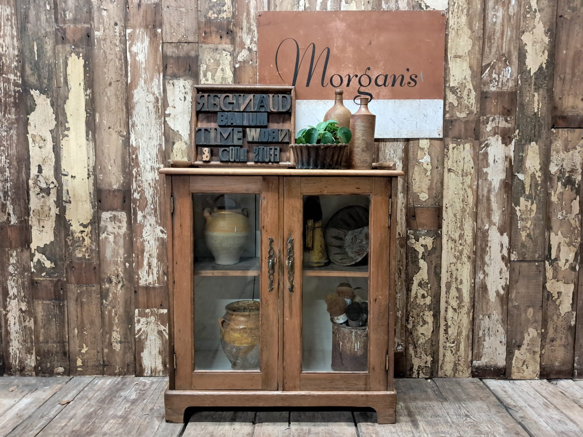 A vintage pine vitrine, circa 1950s, from an old French farmhouse.