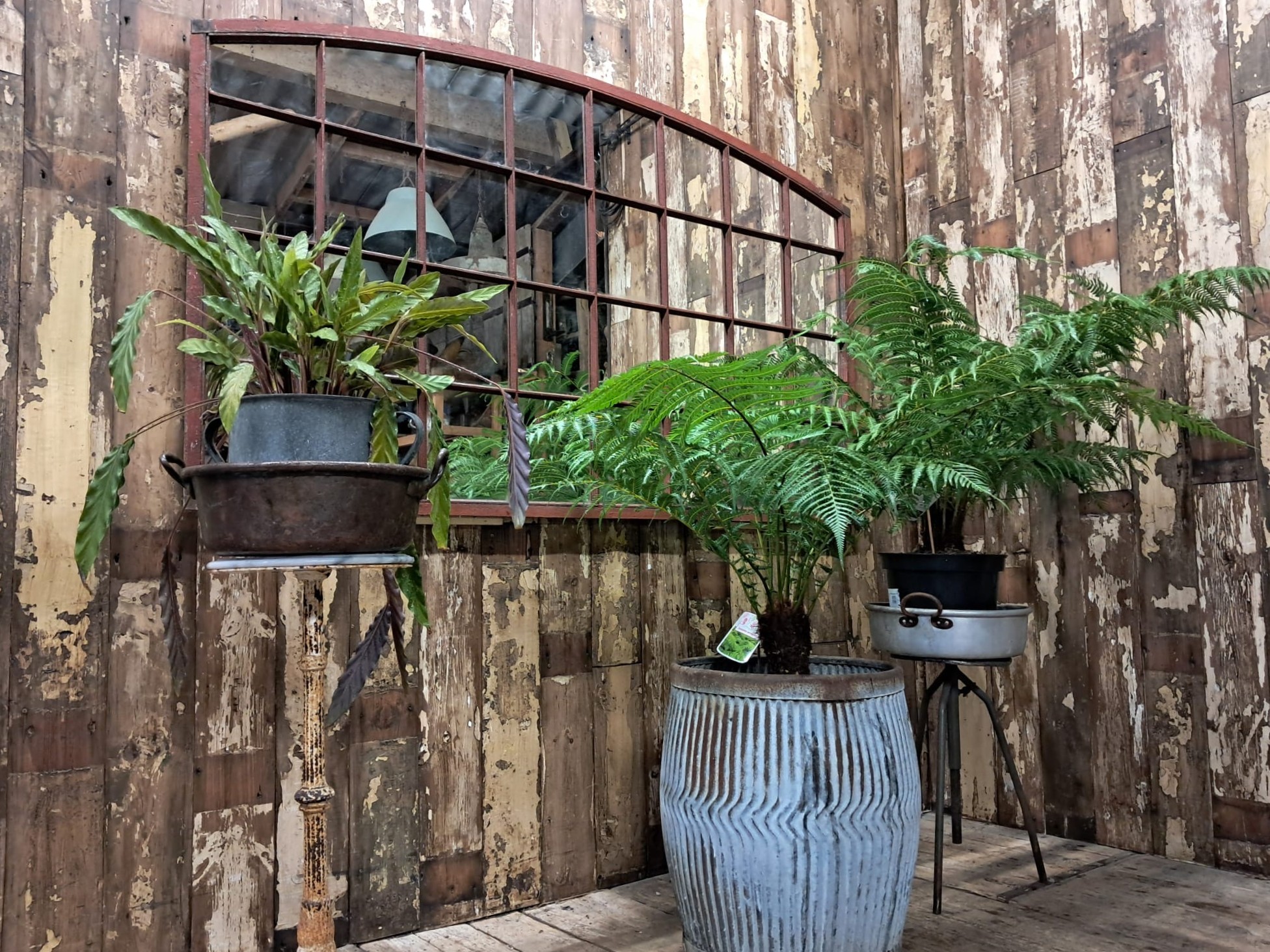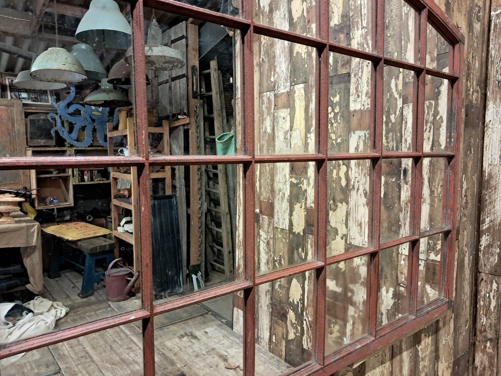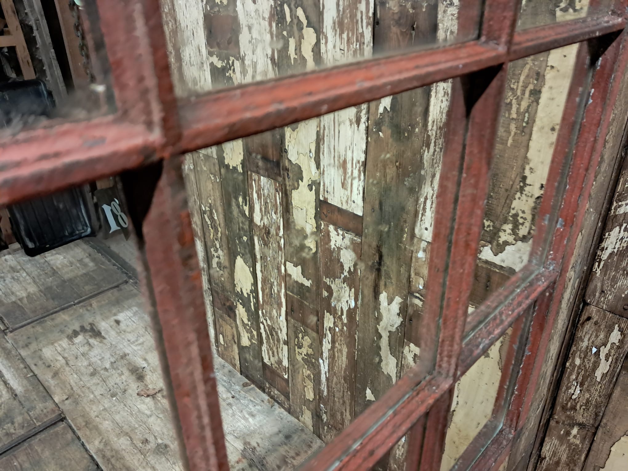 An impressive mirror with 32 panels, original frames with stunning oxidised rusty patina.