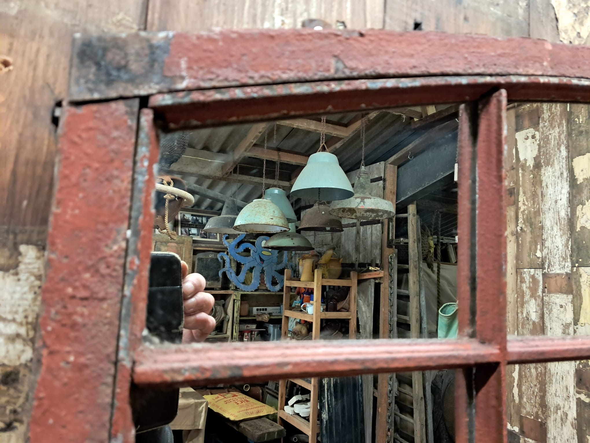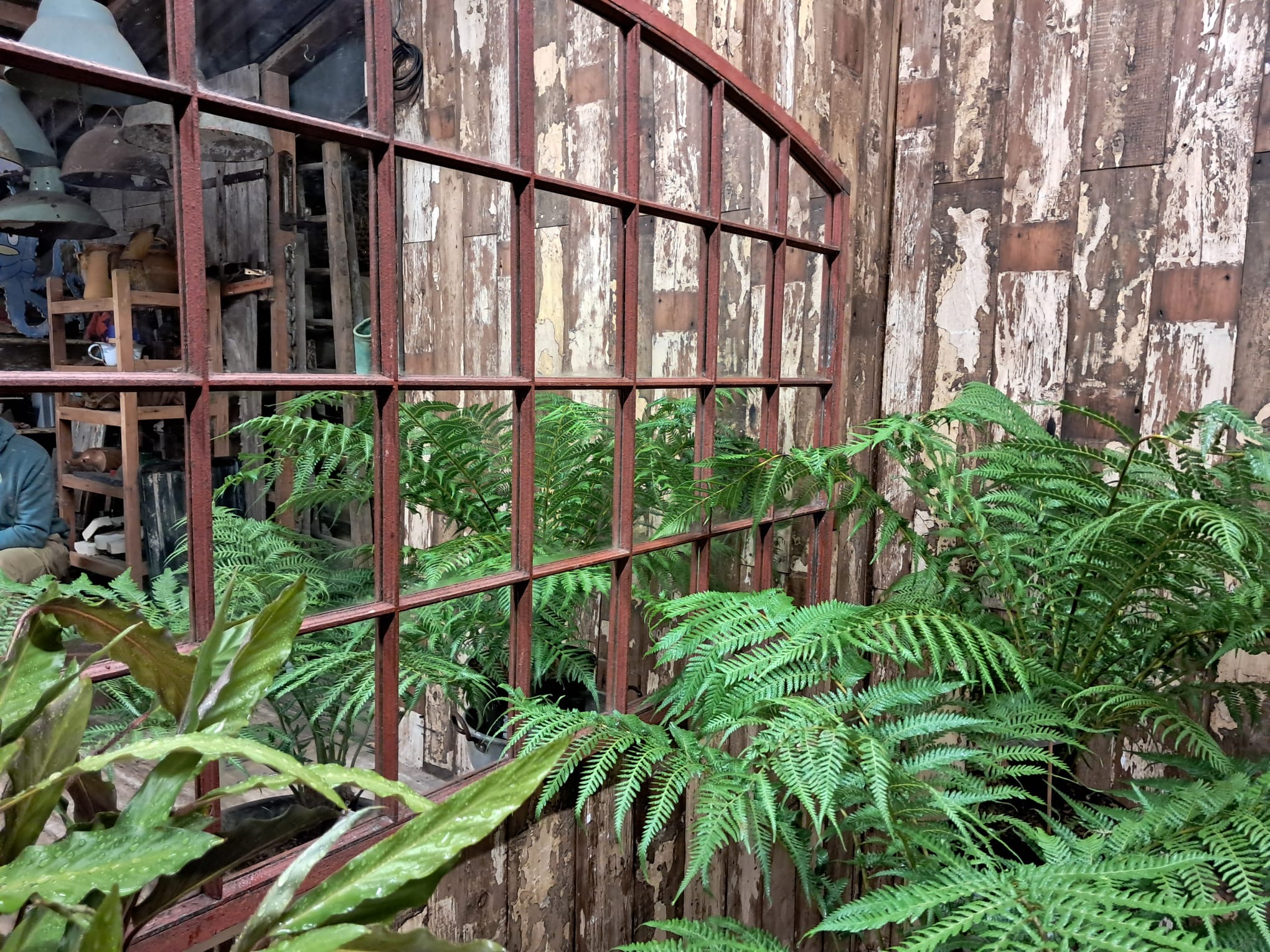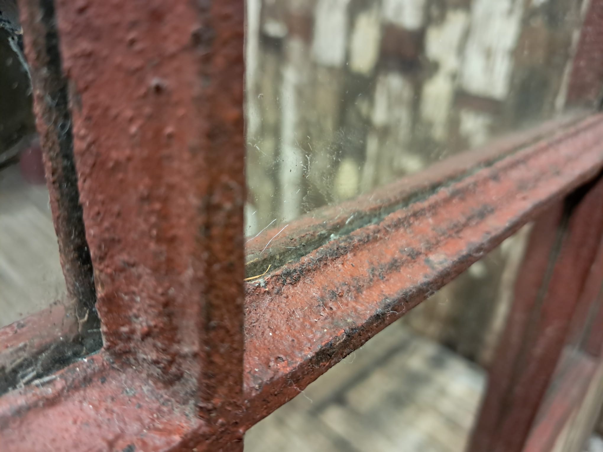An impressive mirror with 32 panels, original frames with stunning oxidised rusty patina.