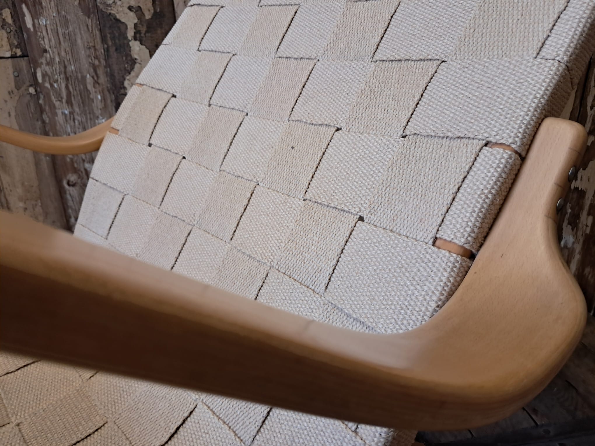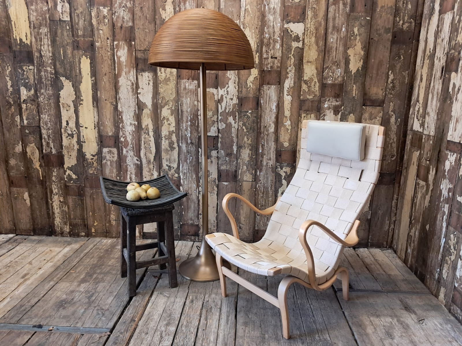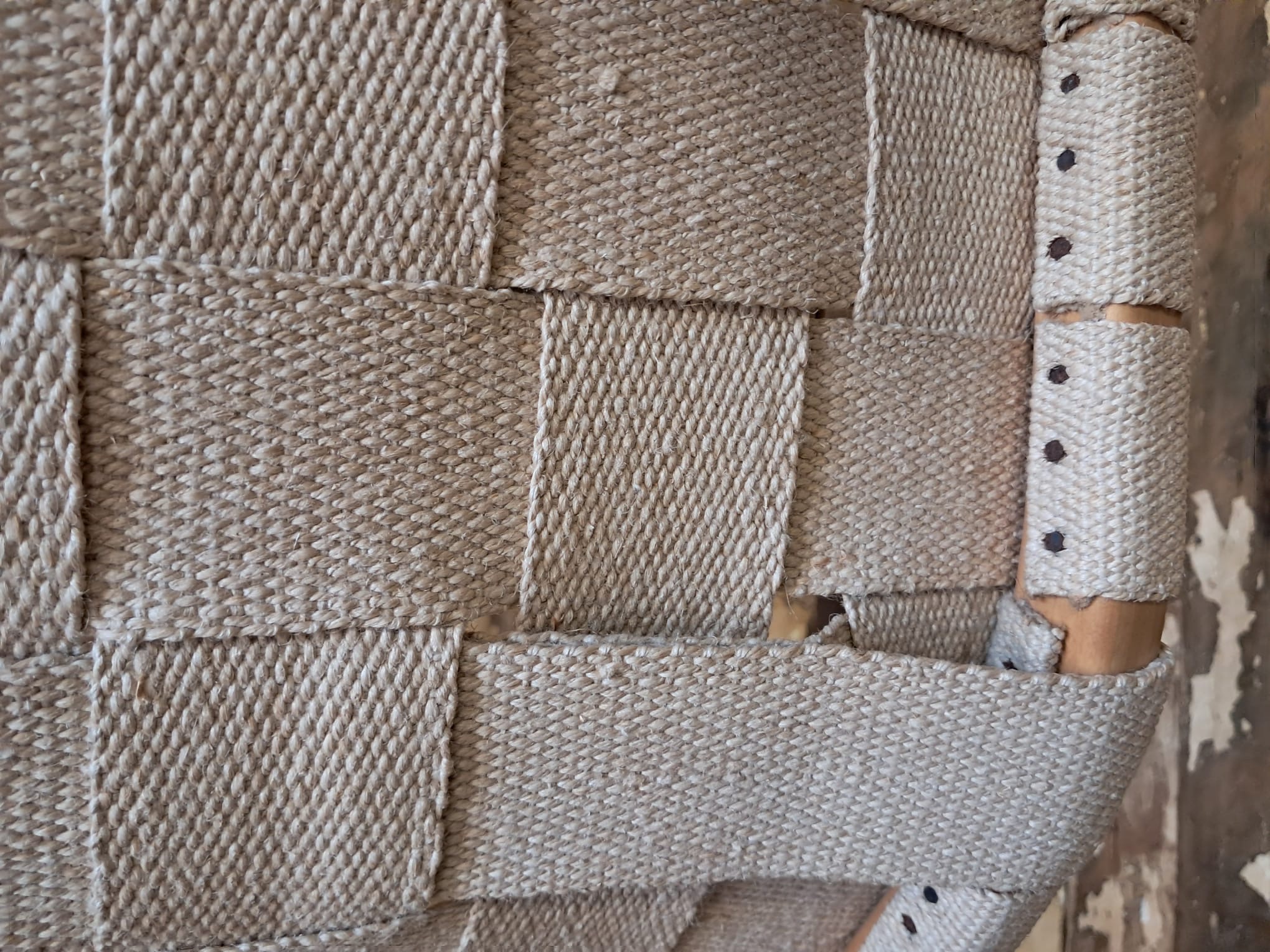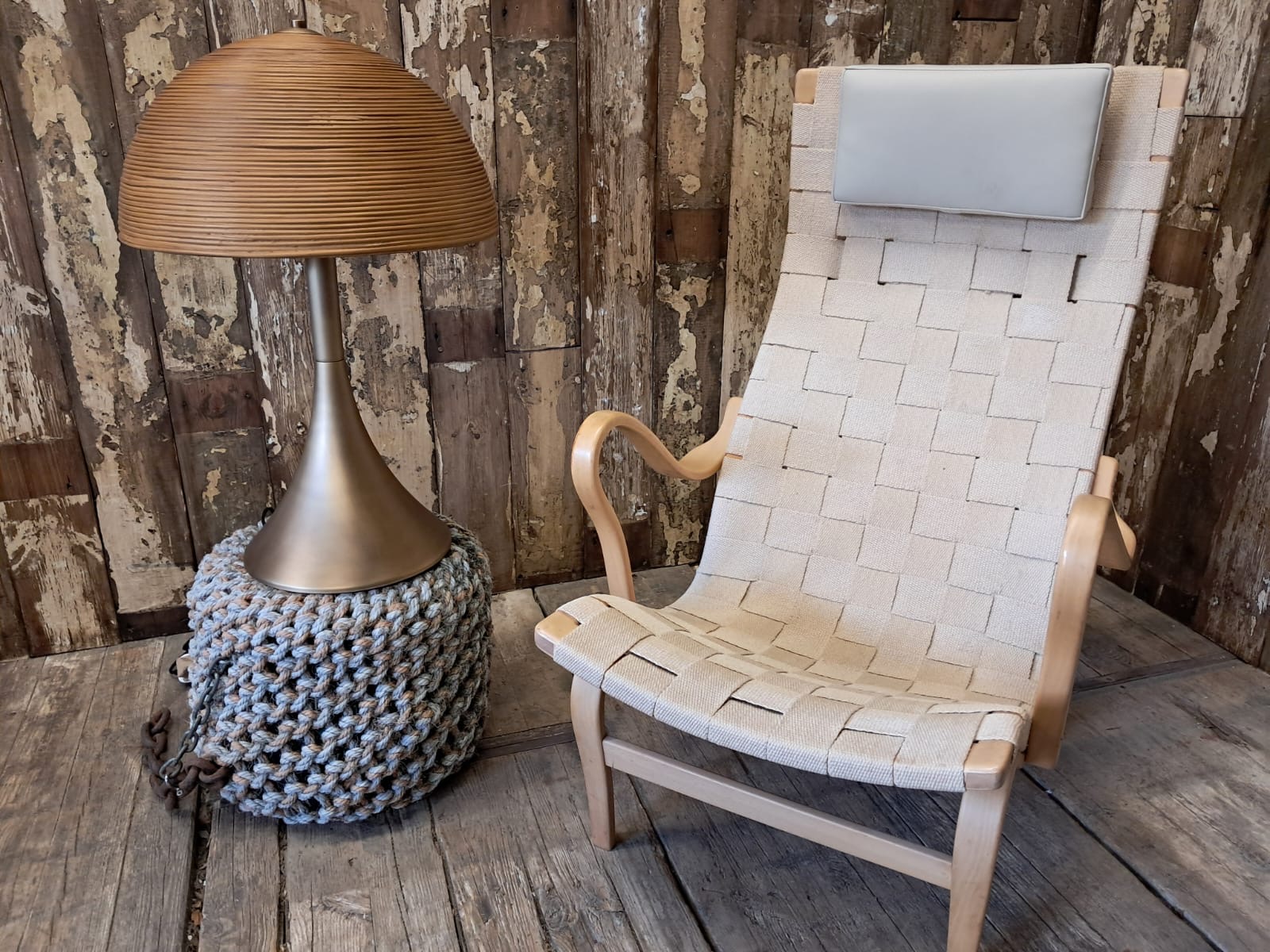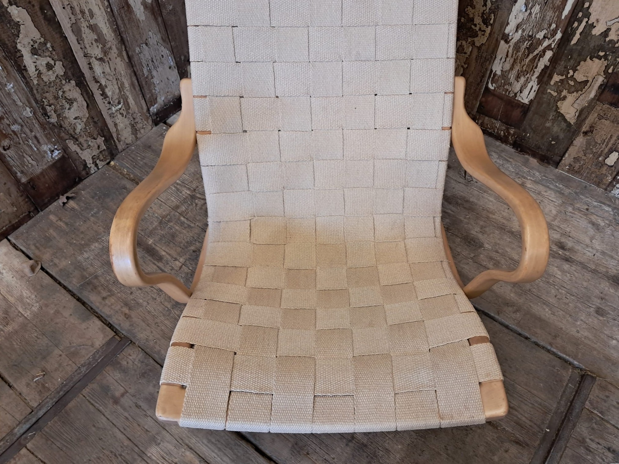 A Scandinavian modern classic, this piece showcases Mathsson’s signature steam-bent beech frame with upholstered natural cotton belt seating.