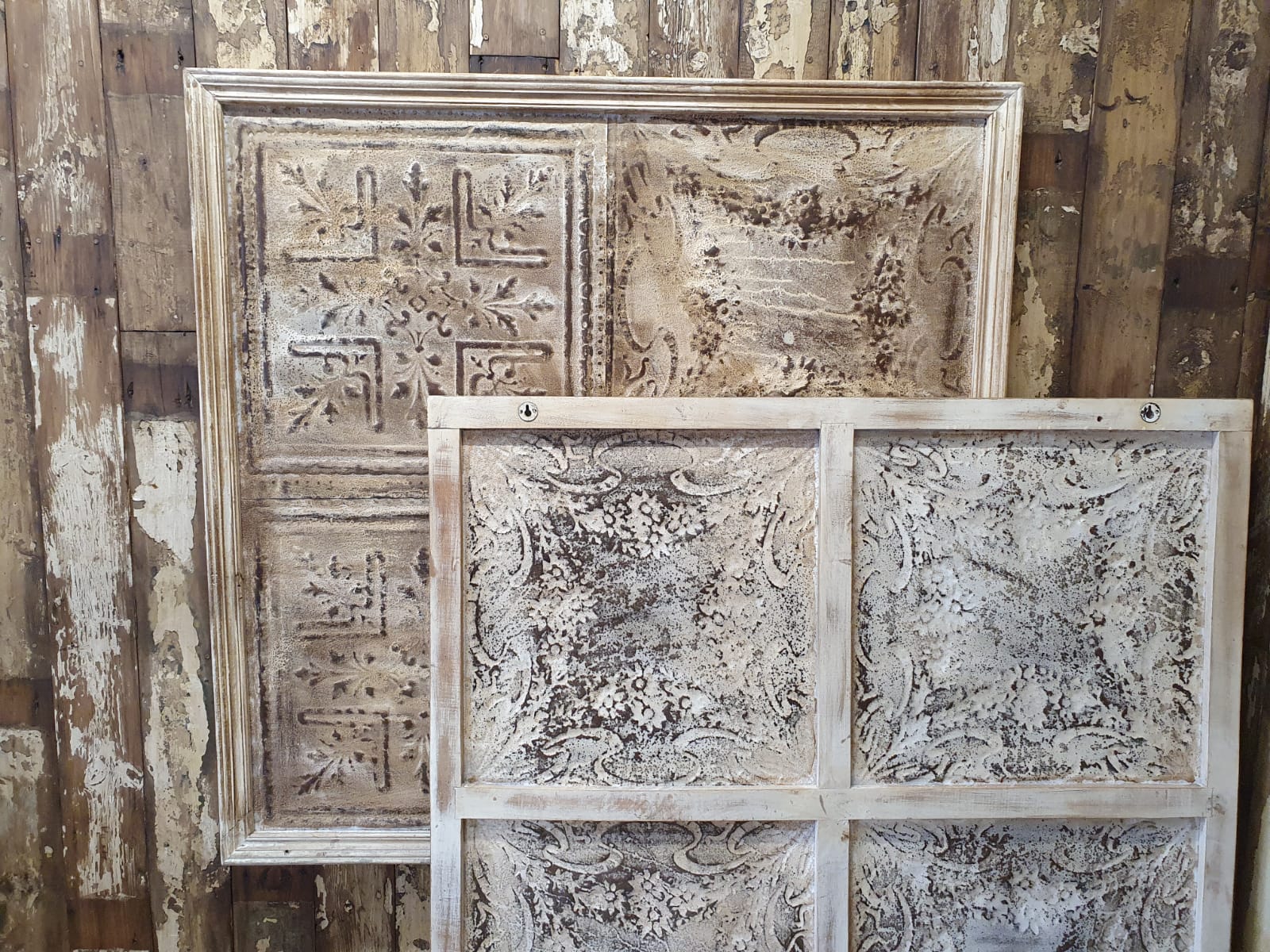Original worn paint and each a different embossed pattern make for stunning pieces of artwork or backdrop for a photo shoot.