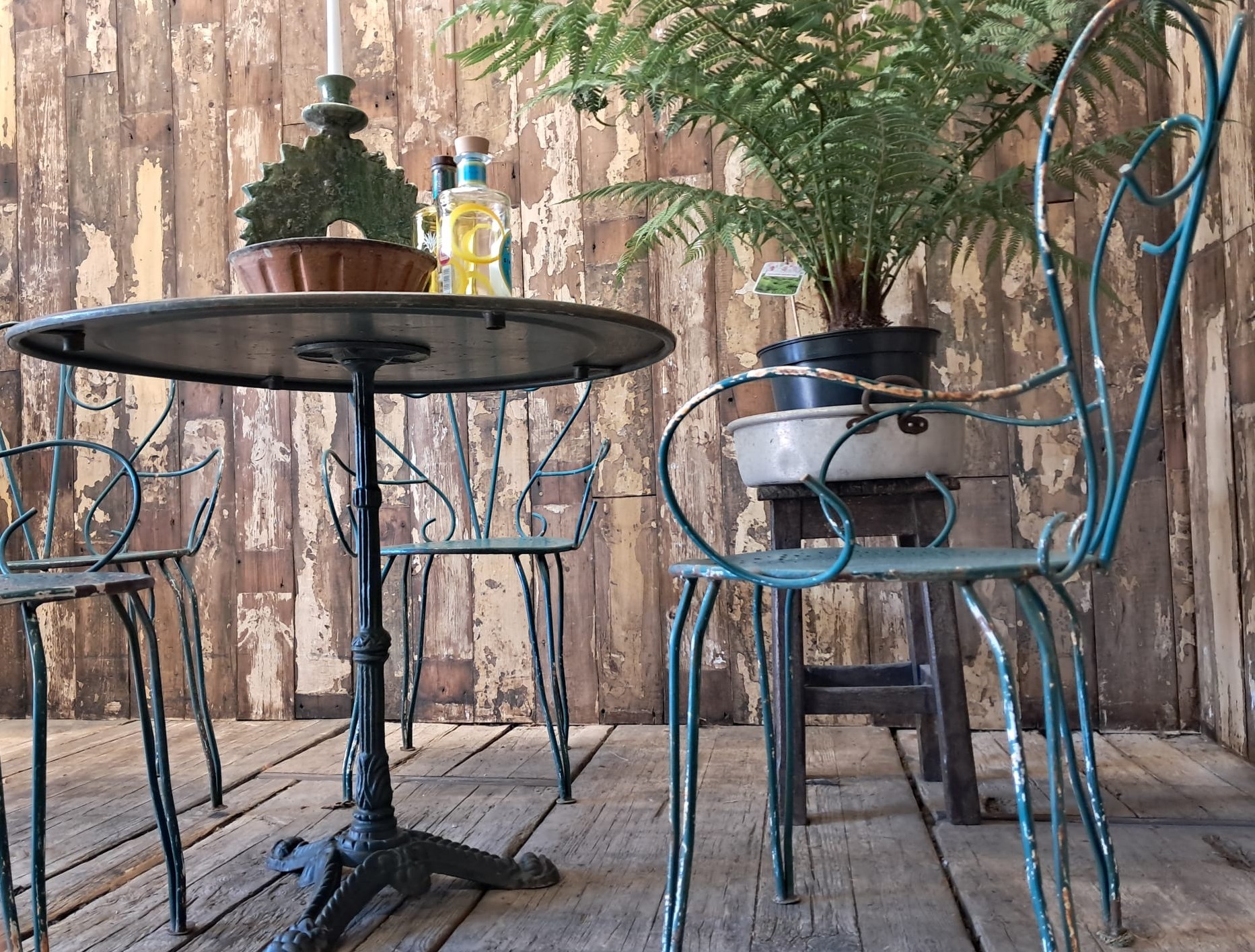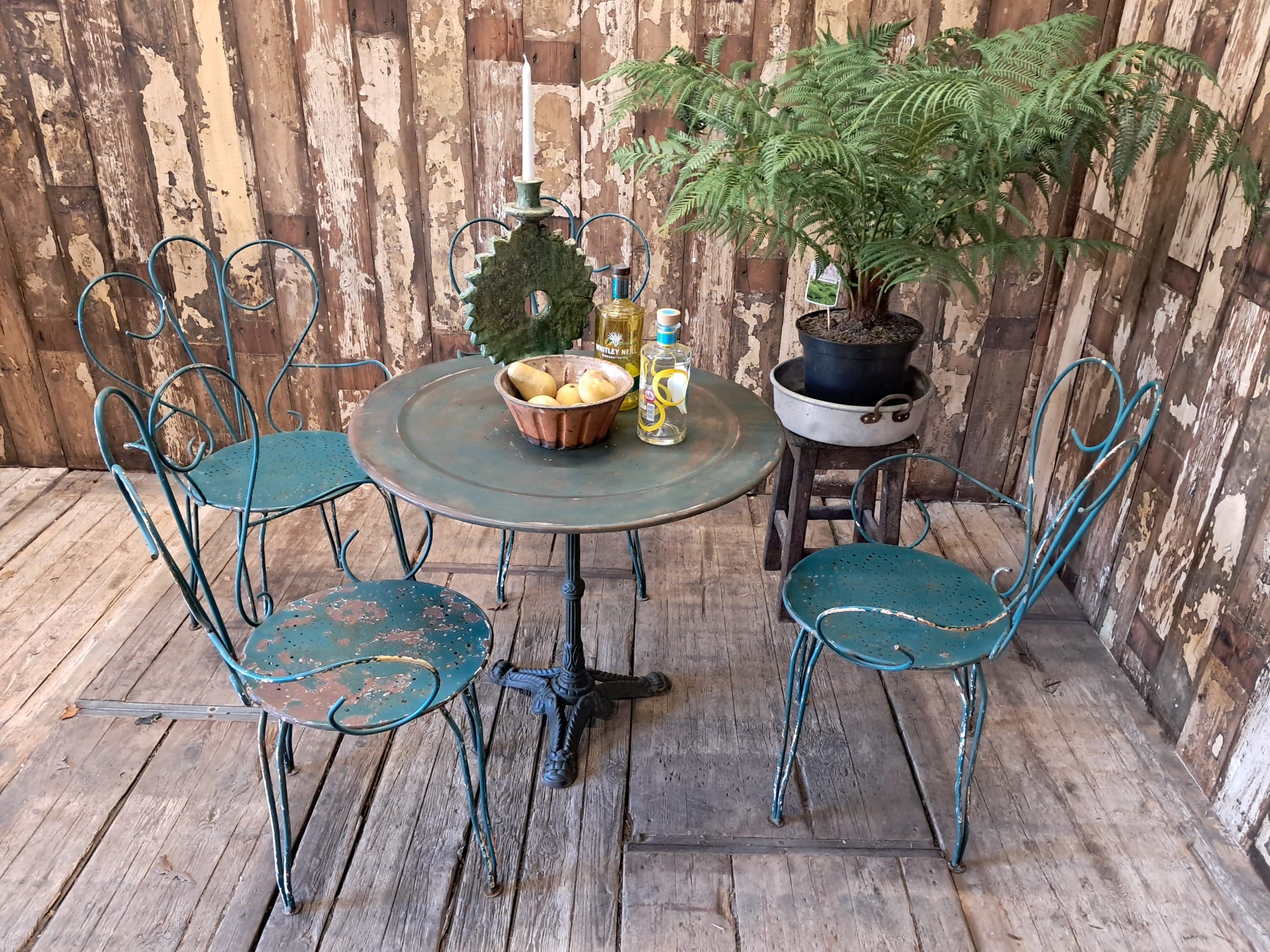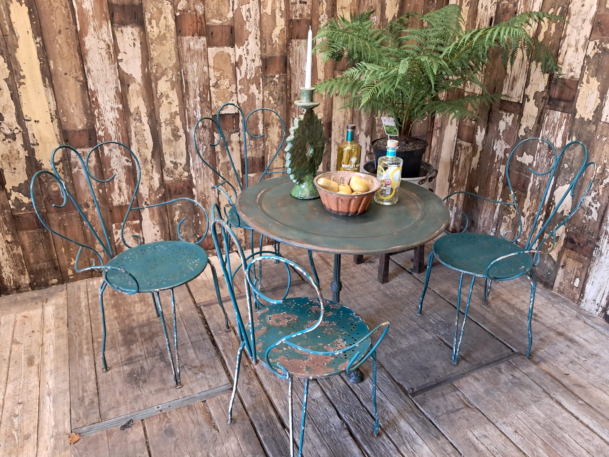 All in a well worn dark green paint and rusty patina – super solid and undamaged and ready for the garden.