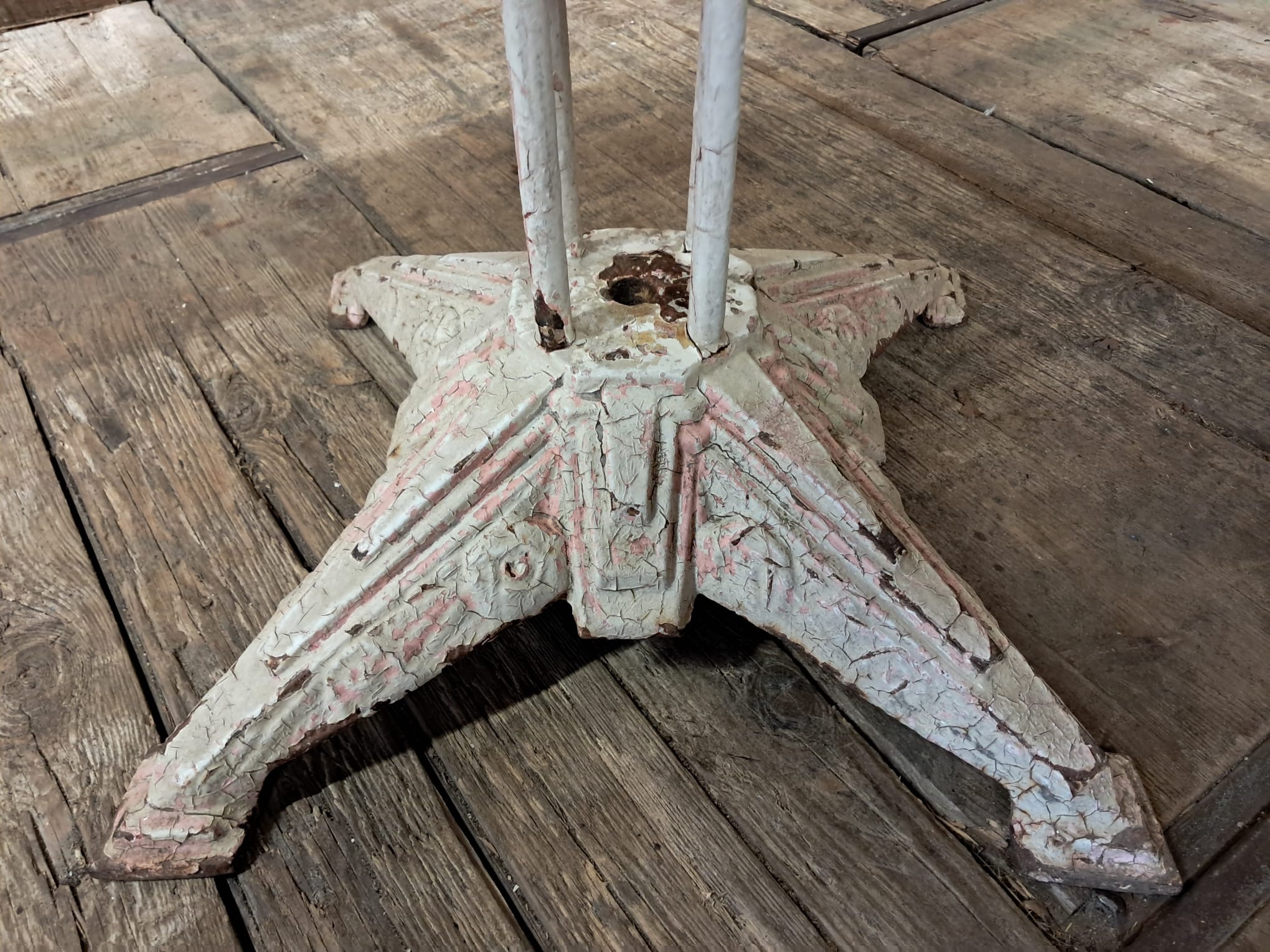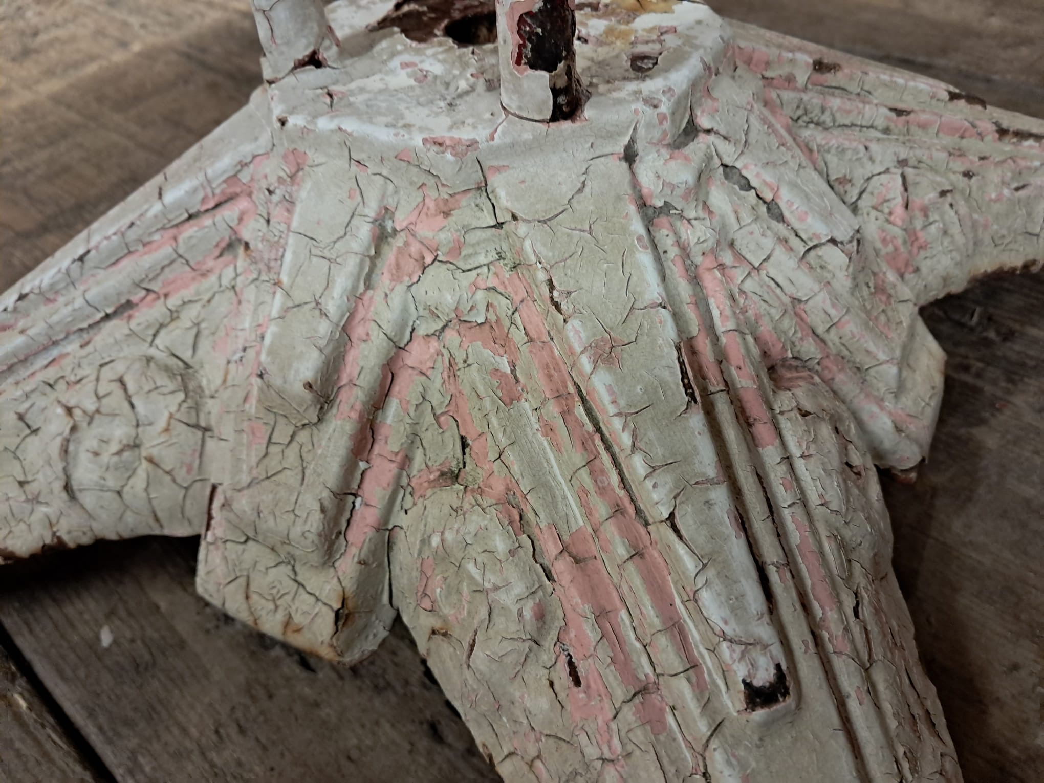 Wonderfully weathered white flaky paint top with splashes of pink peeping through give this table a stunning patina – it has been lightly lacquered to seal and protect the look.