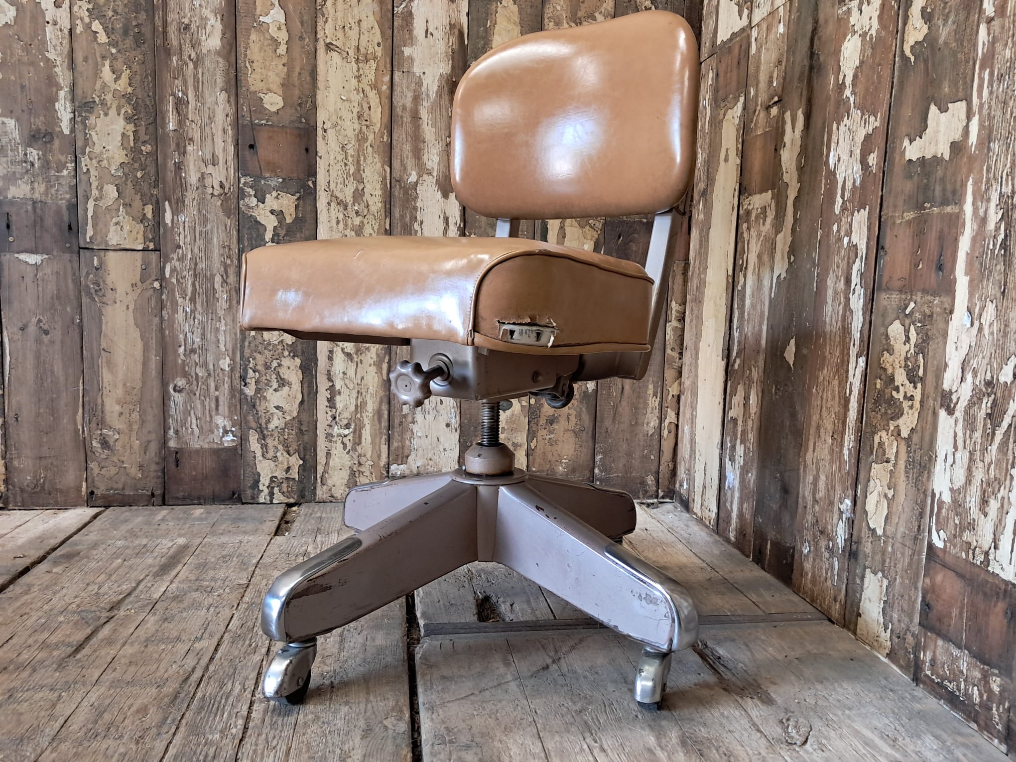 A mid-century tanker rolling office chair from the late 50’s / early 60’s.