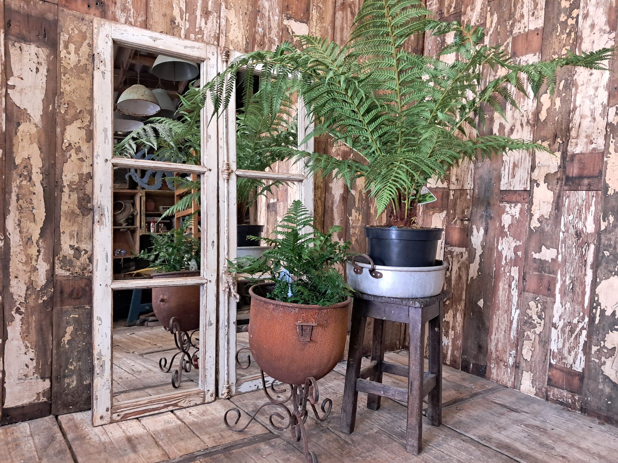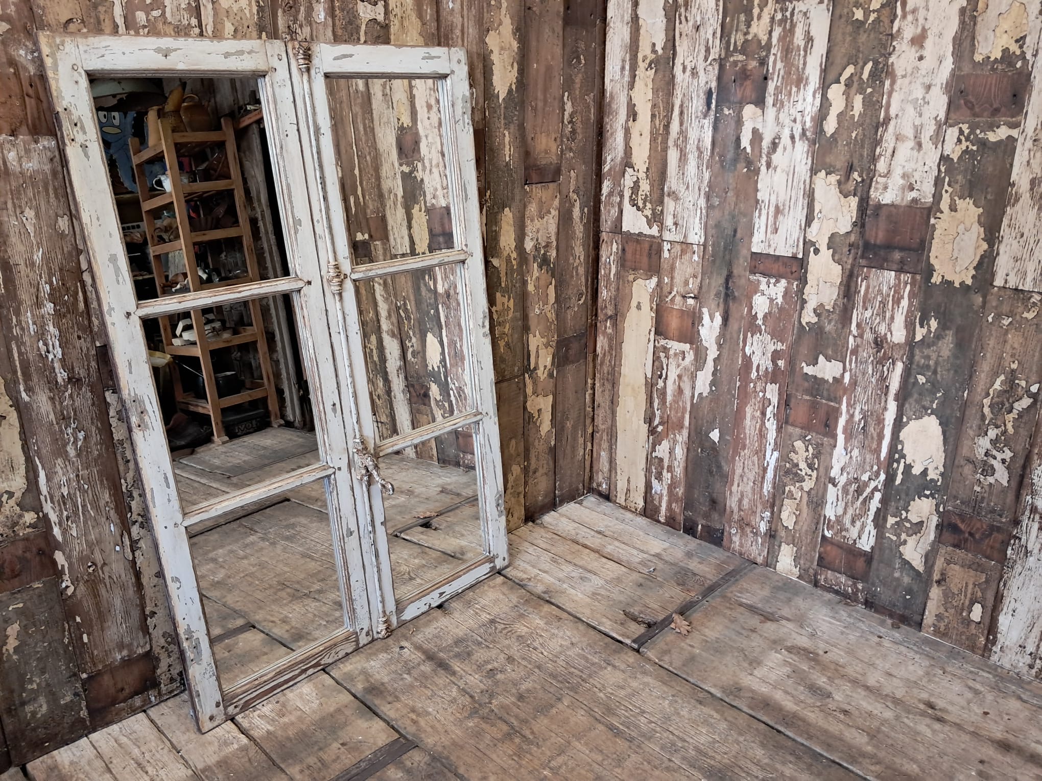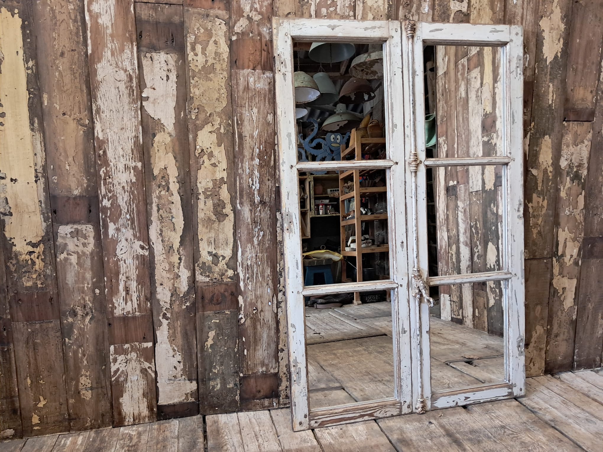 A rustic double French mirrored window, circa 1950’s.