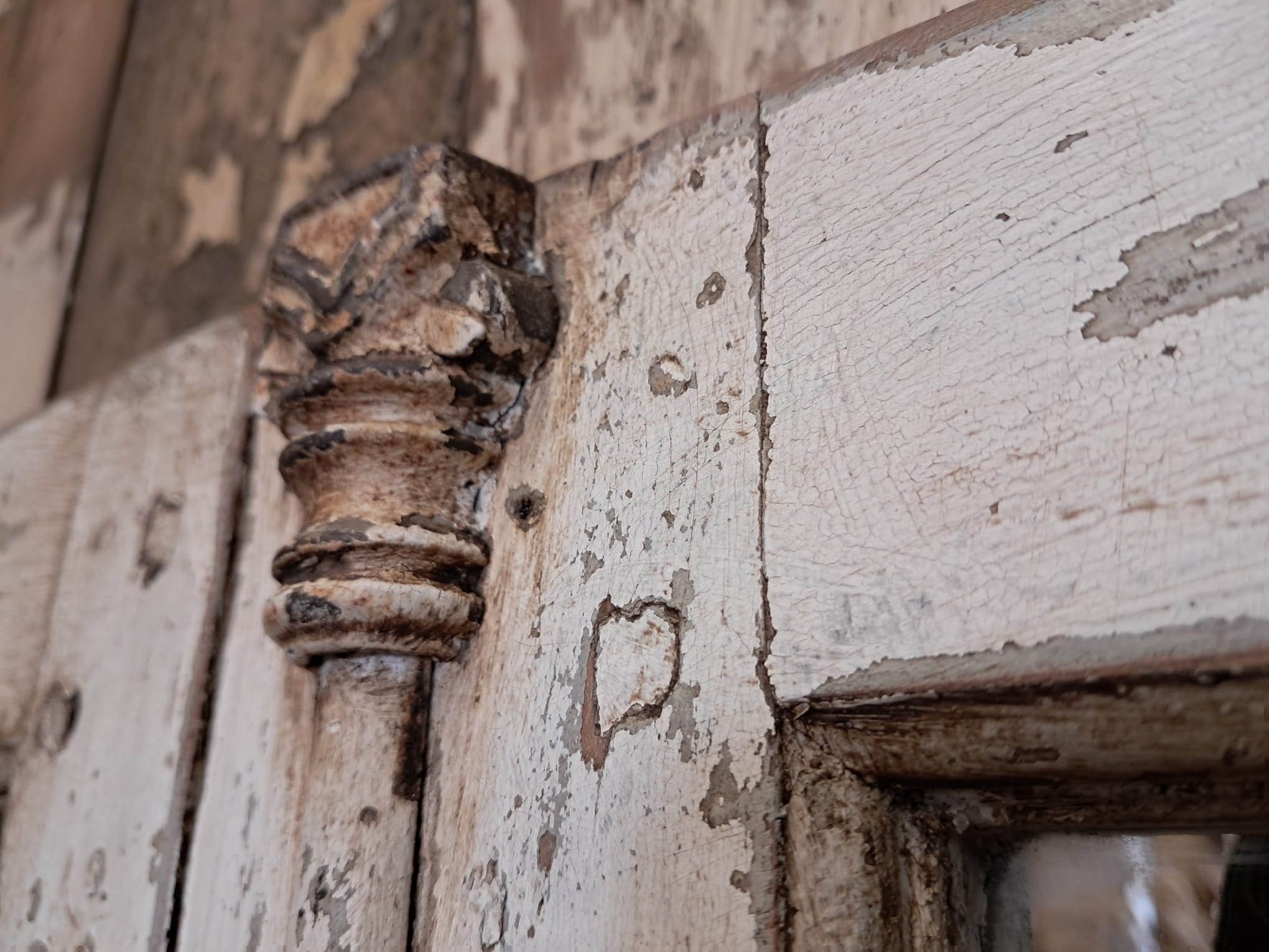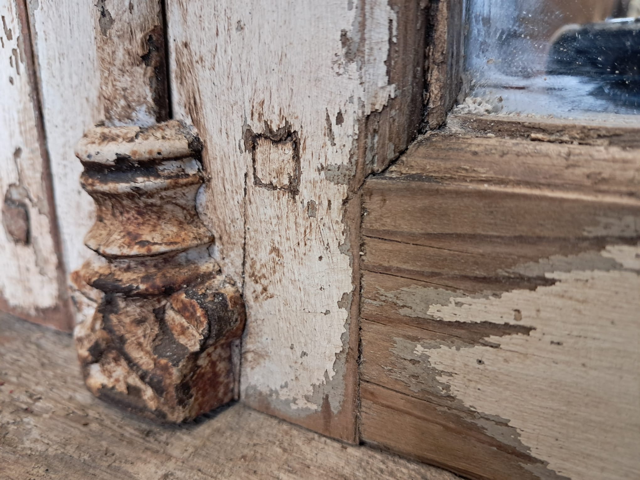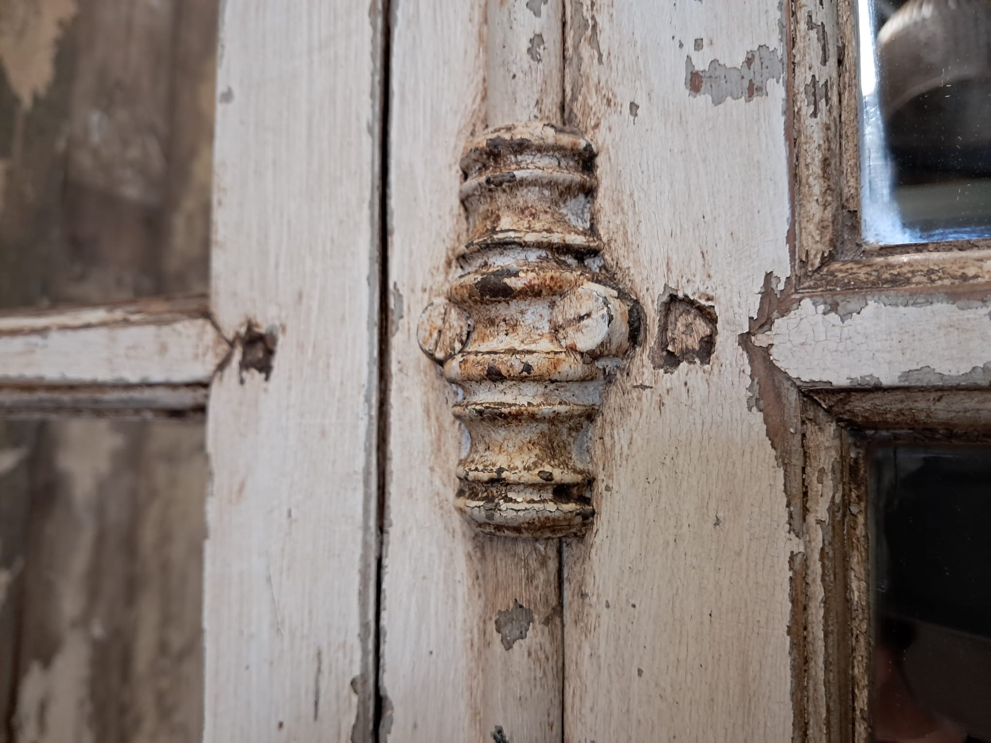 With 6 panels, original decorative furniture, including shoot bolt with stunning and unusual serpents handle, and lovely flaky paint which has been sanded and sealed to retain its patina.
