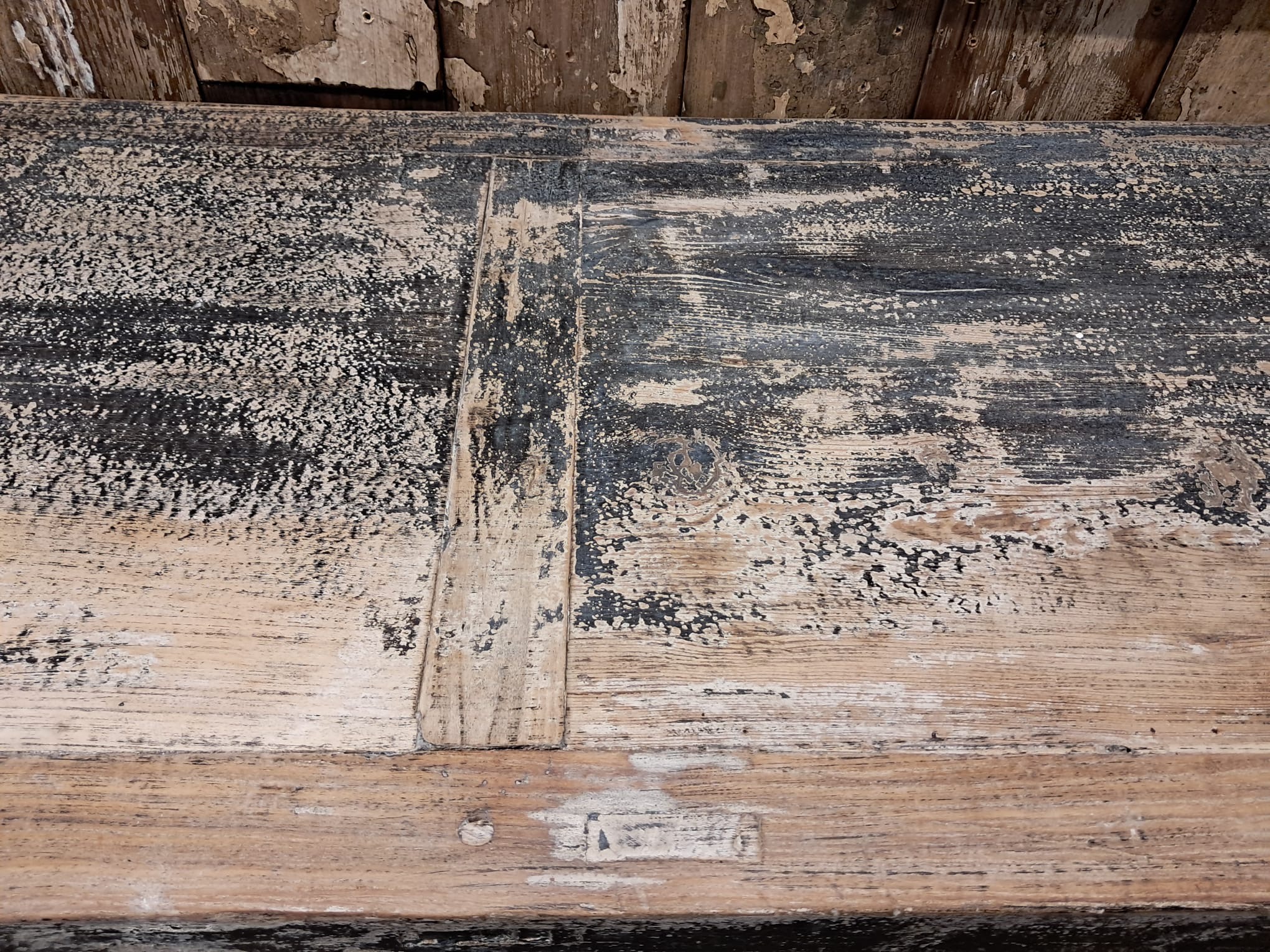 A grand scale rustic elm, long black painted sideboard, typical provincial style of the Gansu province in western China circa early 1900s.