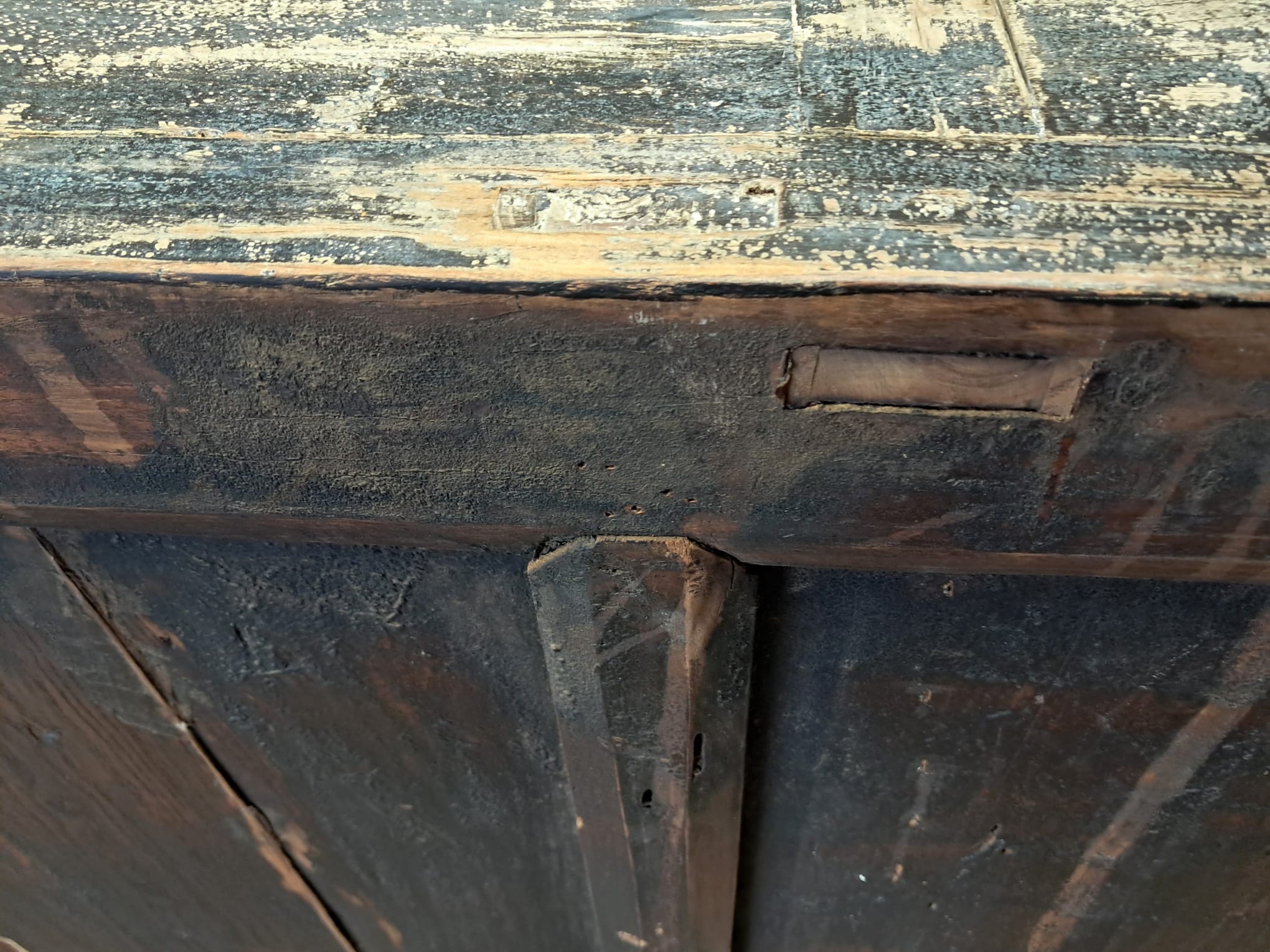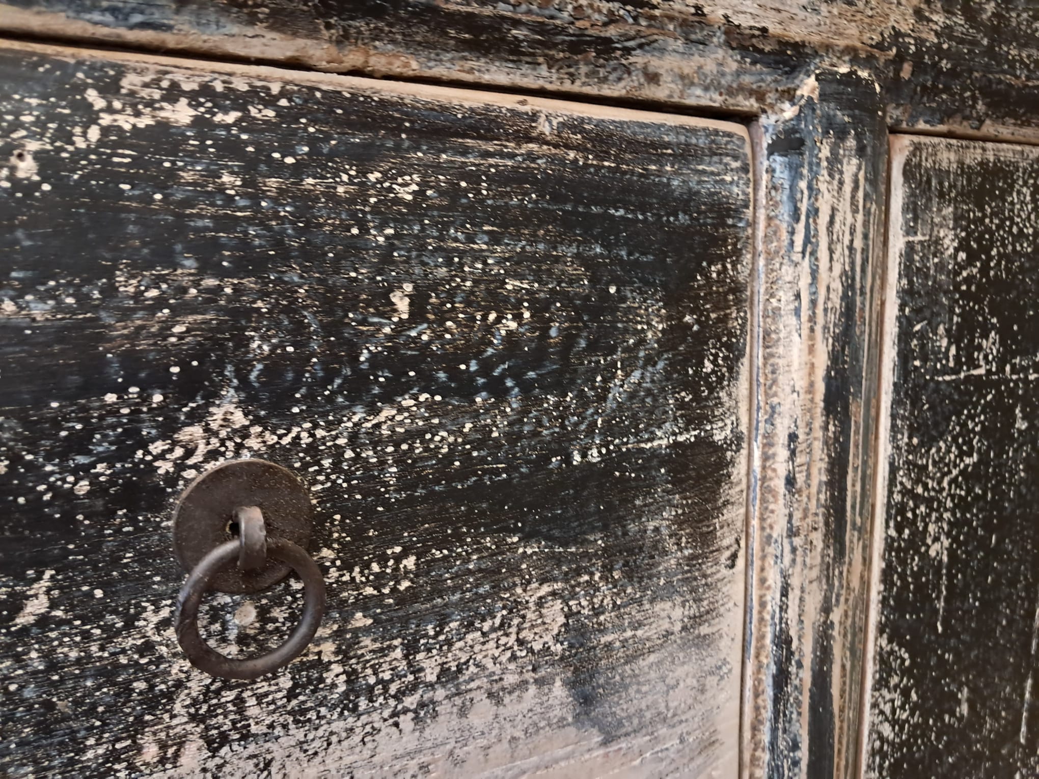 It has a naked raw look with gently distressed original black patina. Most Chinese pieces have a lacquered finish, this one doesn’t, leaving an appealing organic, rustic and nuanced feel that suits most interiors.