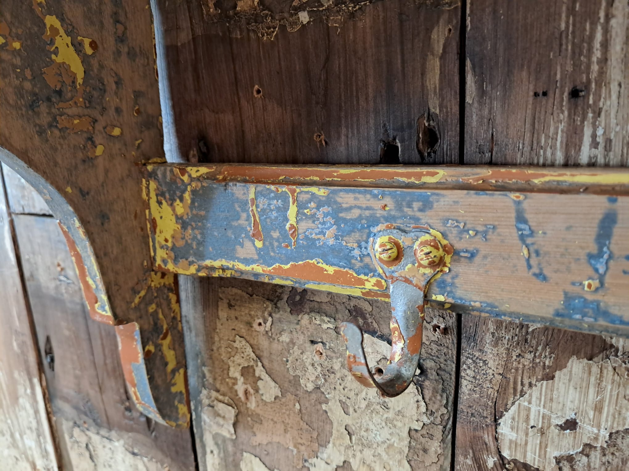 A lovely dry scraped finish reveals layers of vibrant blue, yellow and burnt orange – a beautifully distressed addition to the kitchen, hall or bathroom.