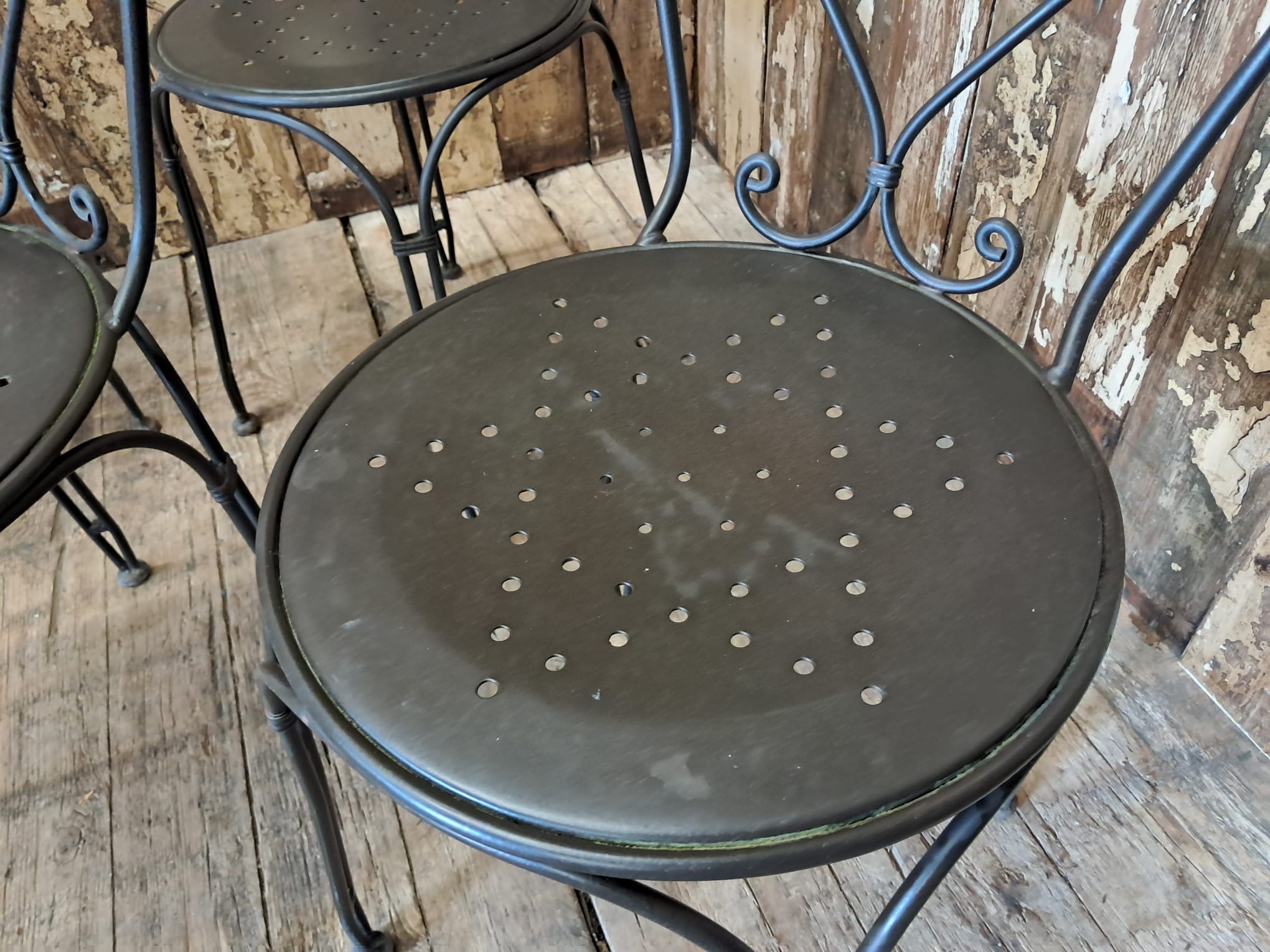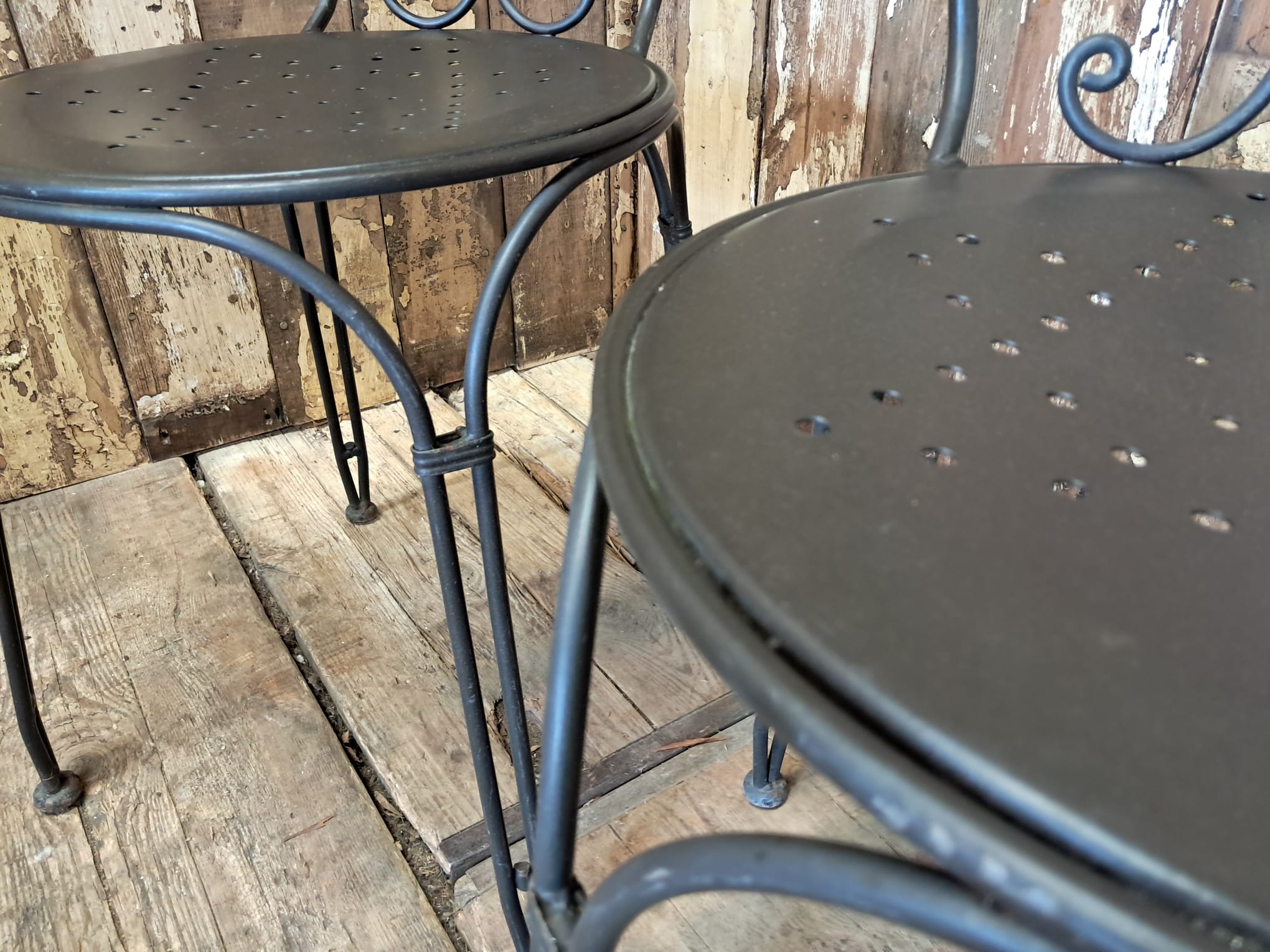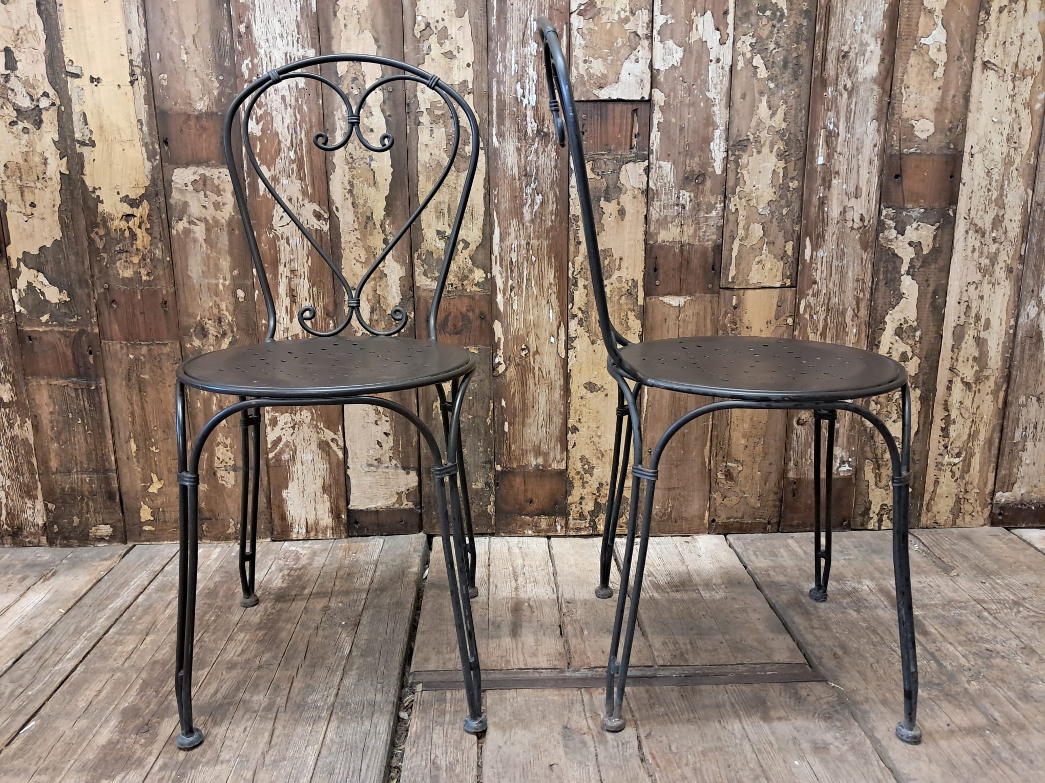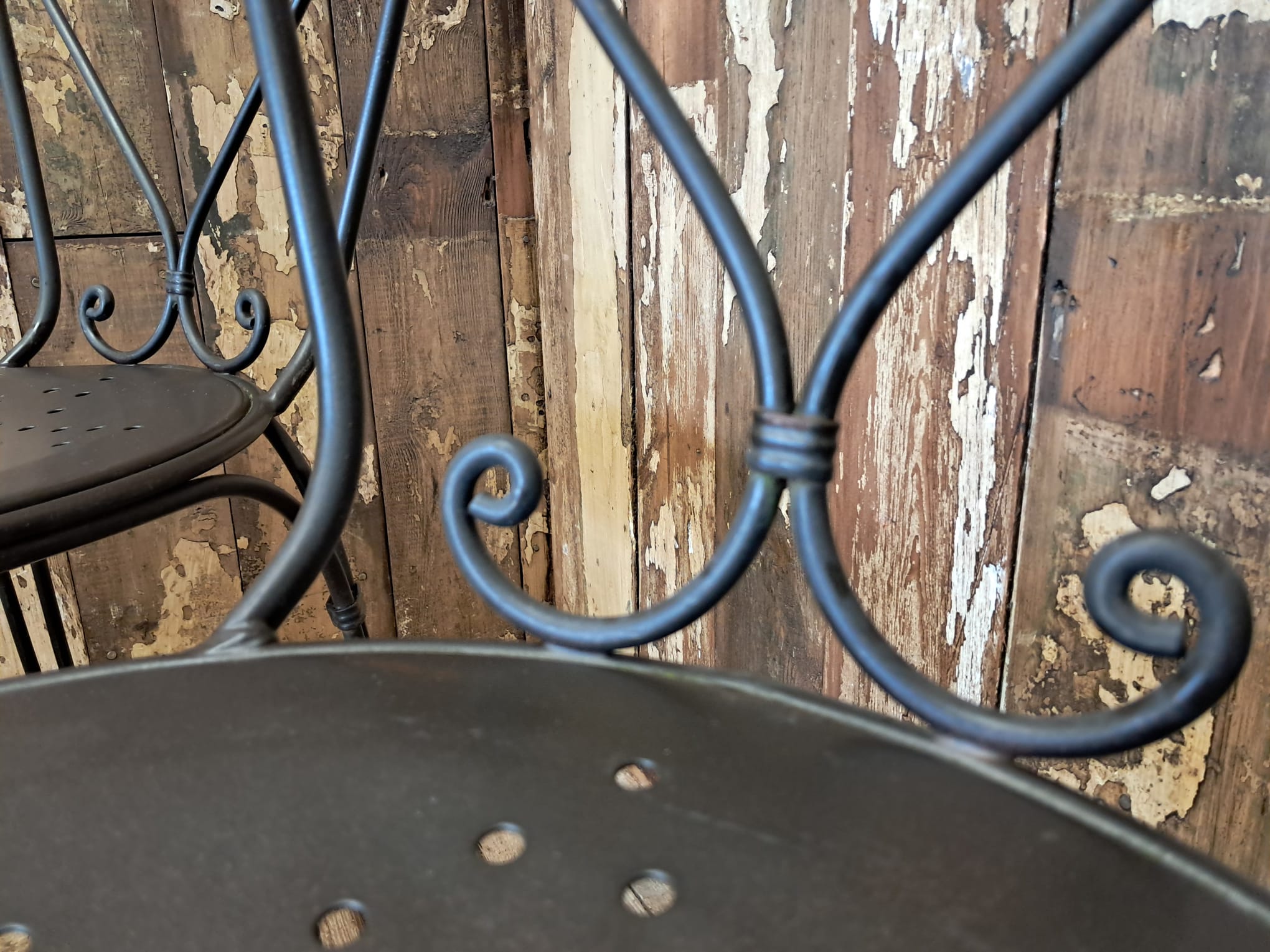 Beautiful traditional scroll work to the backrest in typical heart formation and perforated seats.