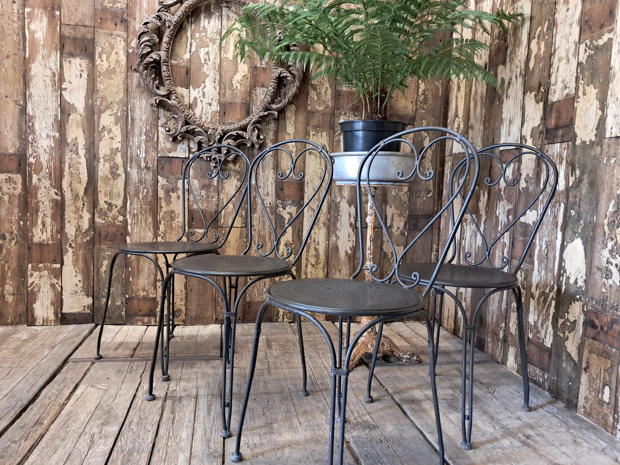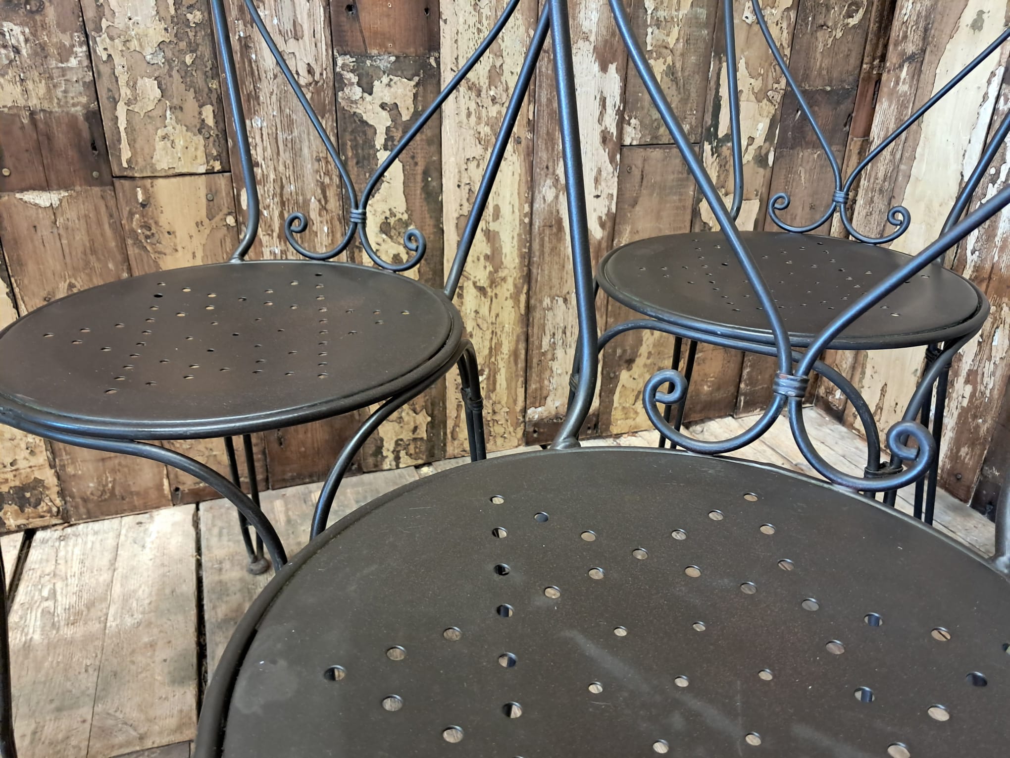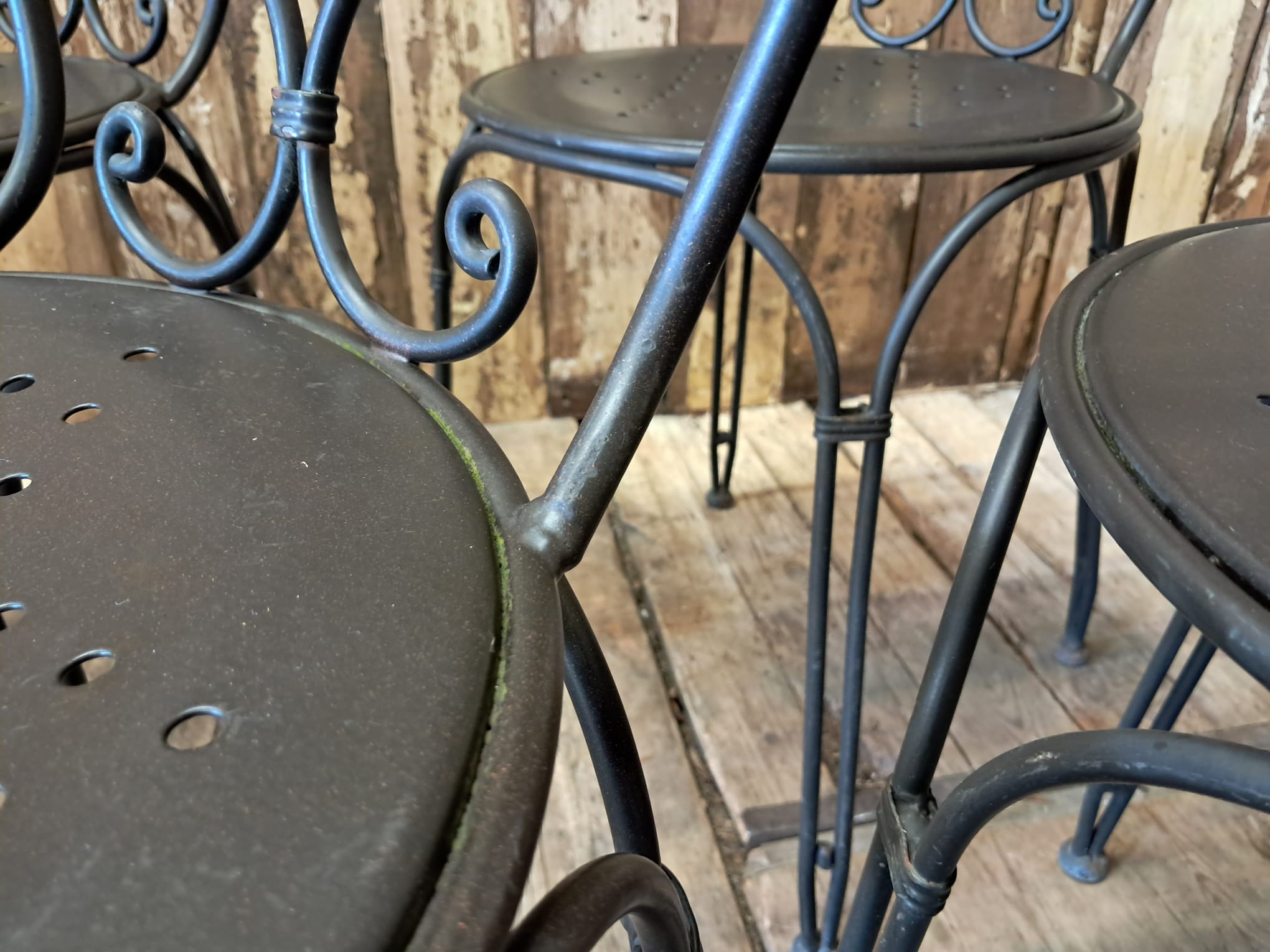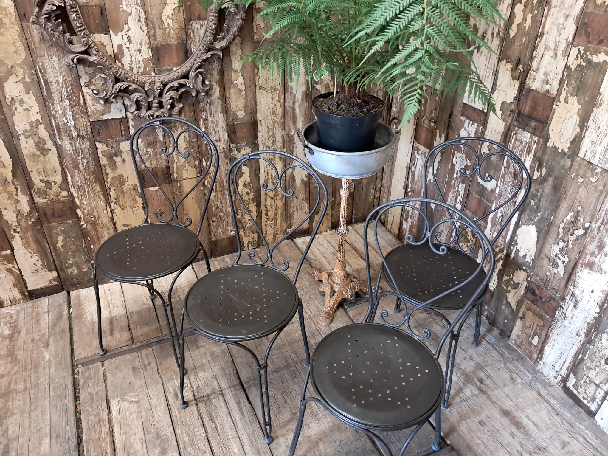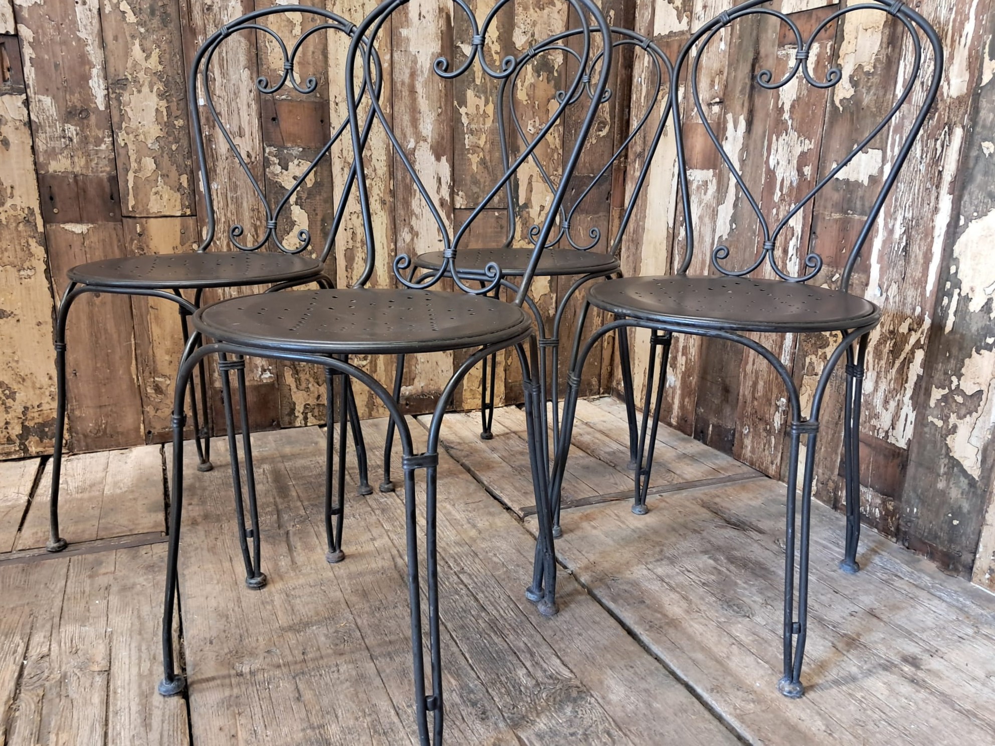 Beautiful traditional scroll work to the backrest in typical heart formation and perforated seats.