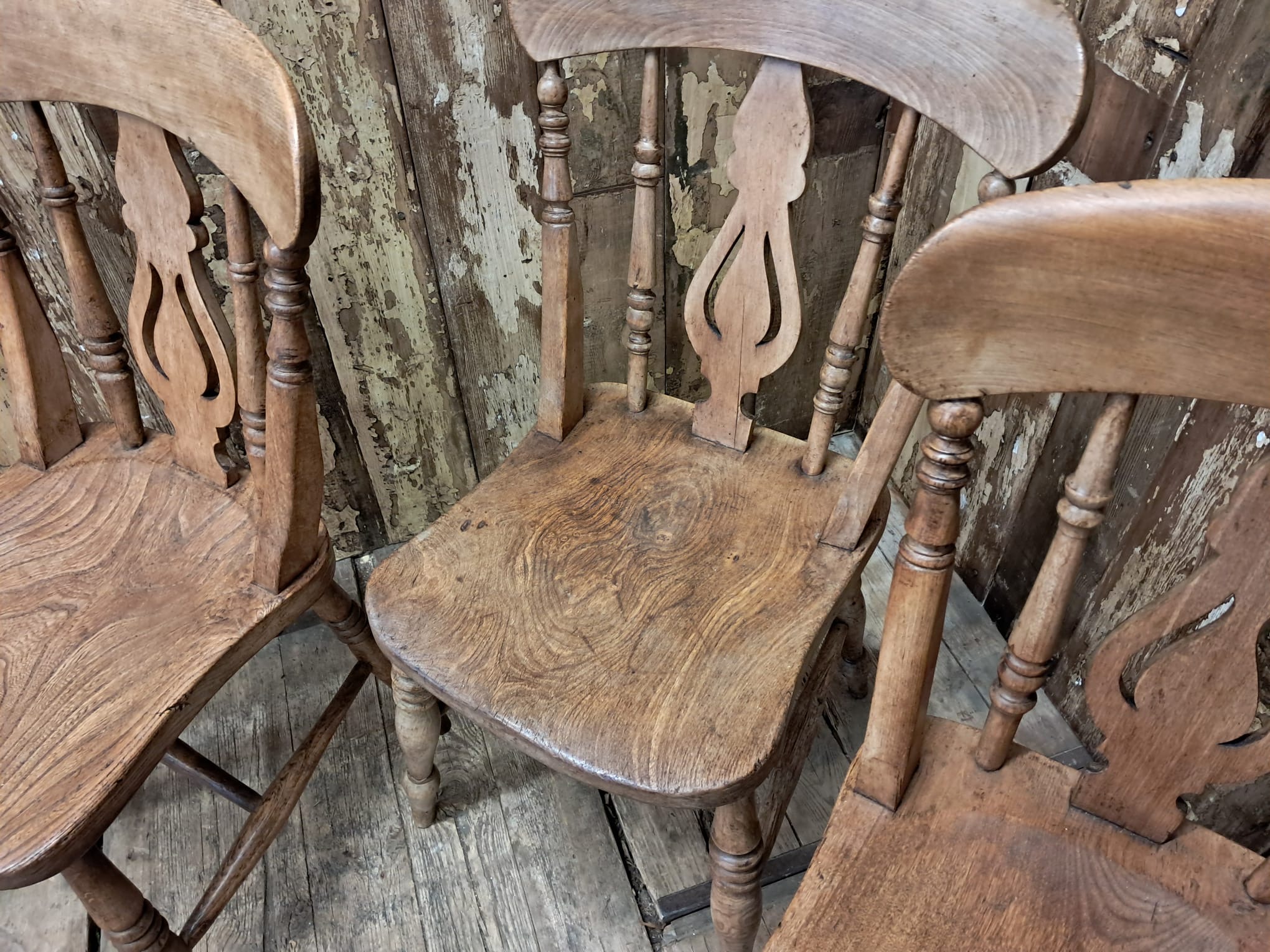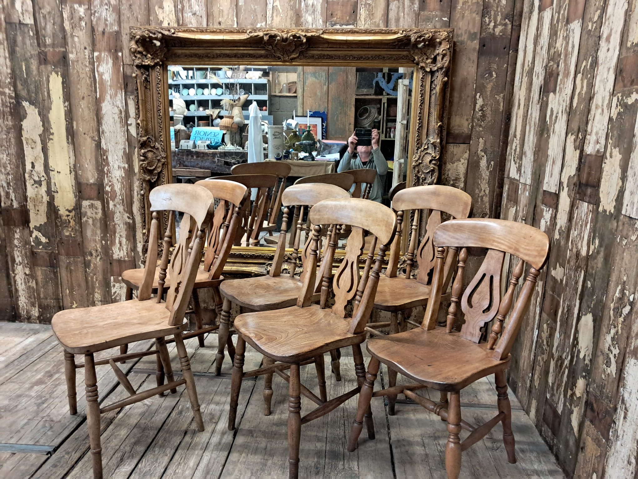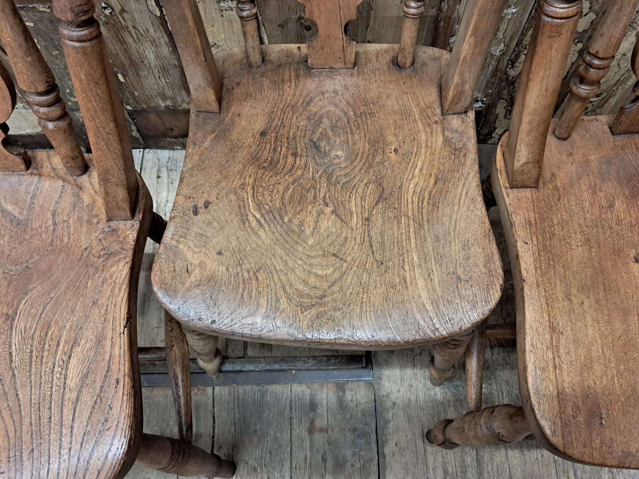 A set of 6 Victorian fiddle back farmhouse kitchen chairs.