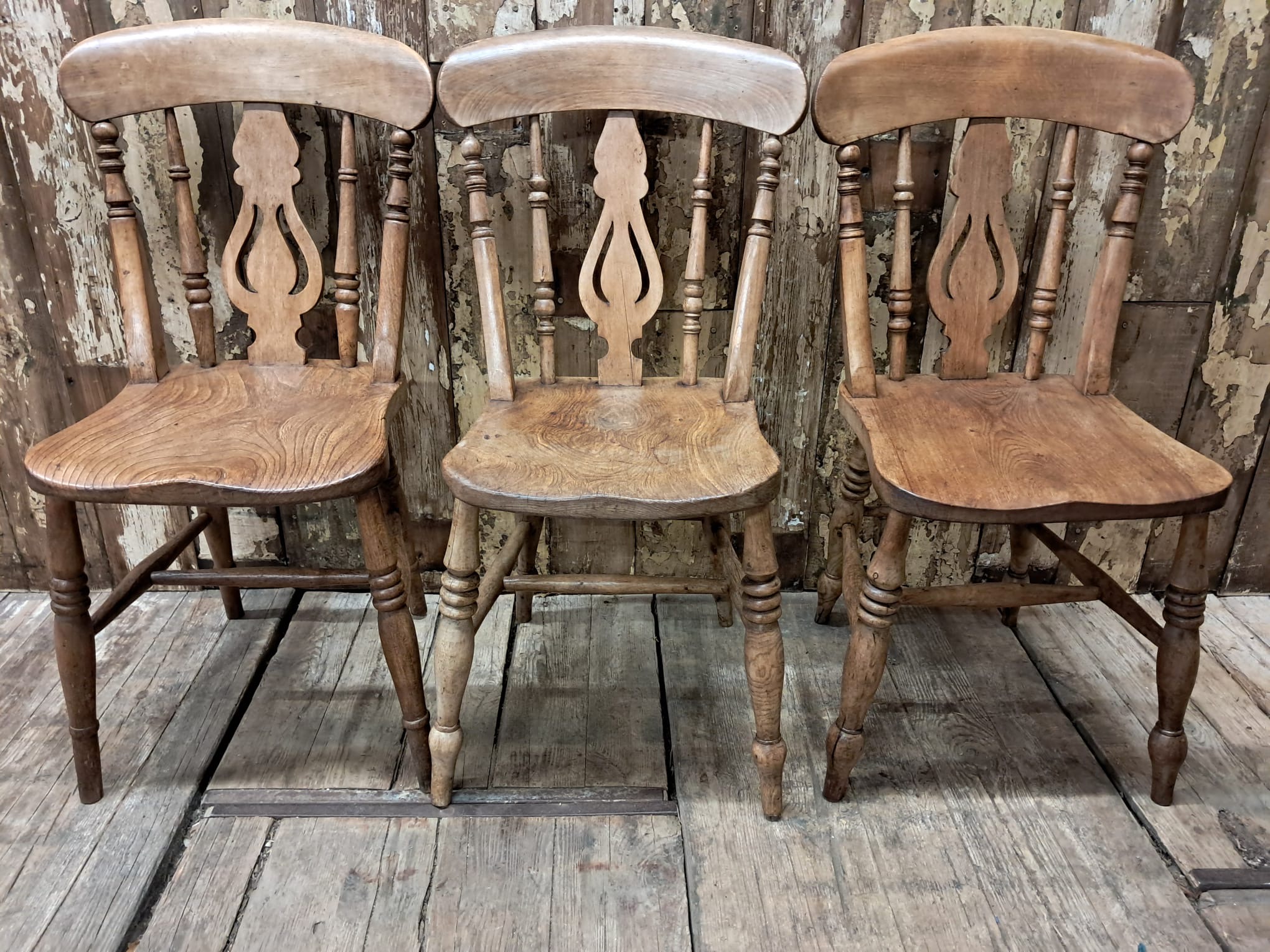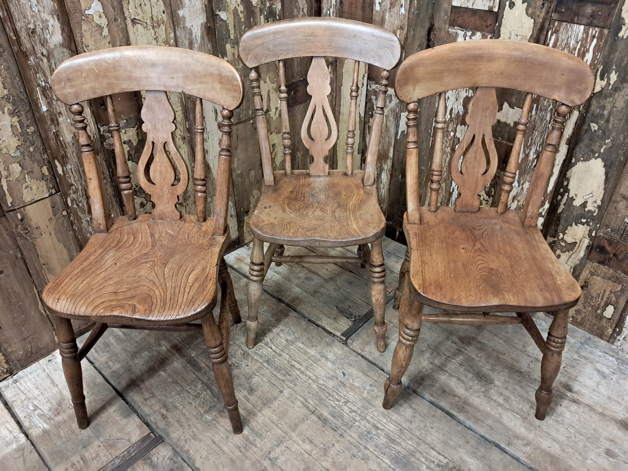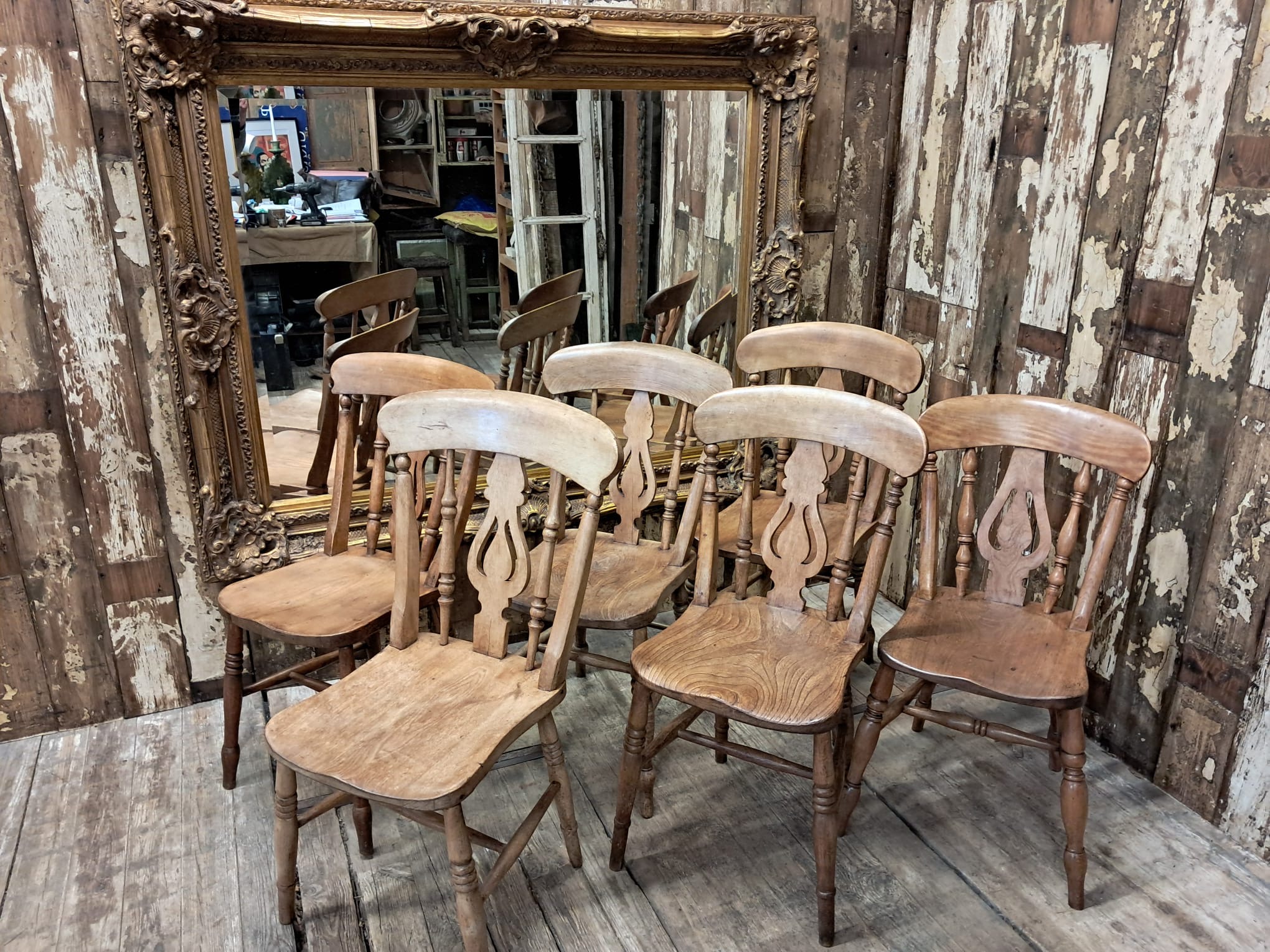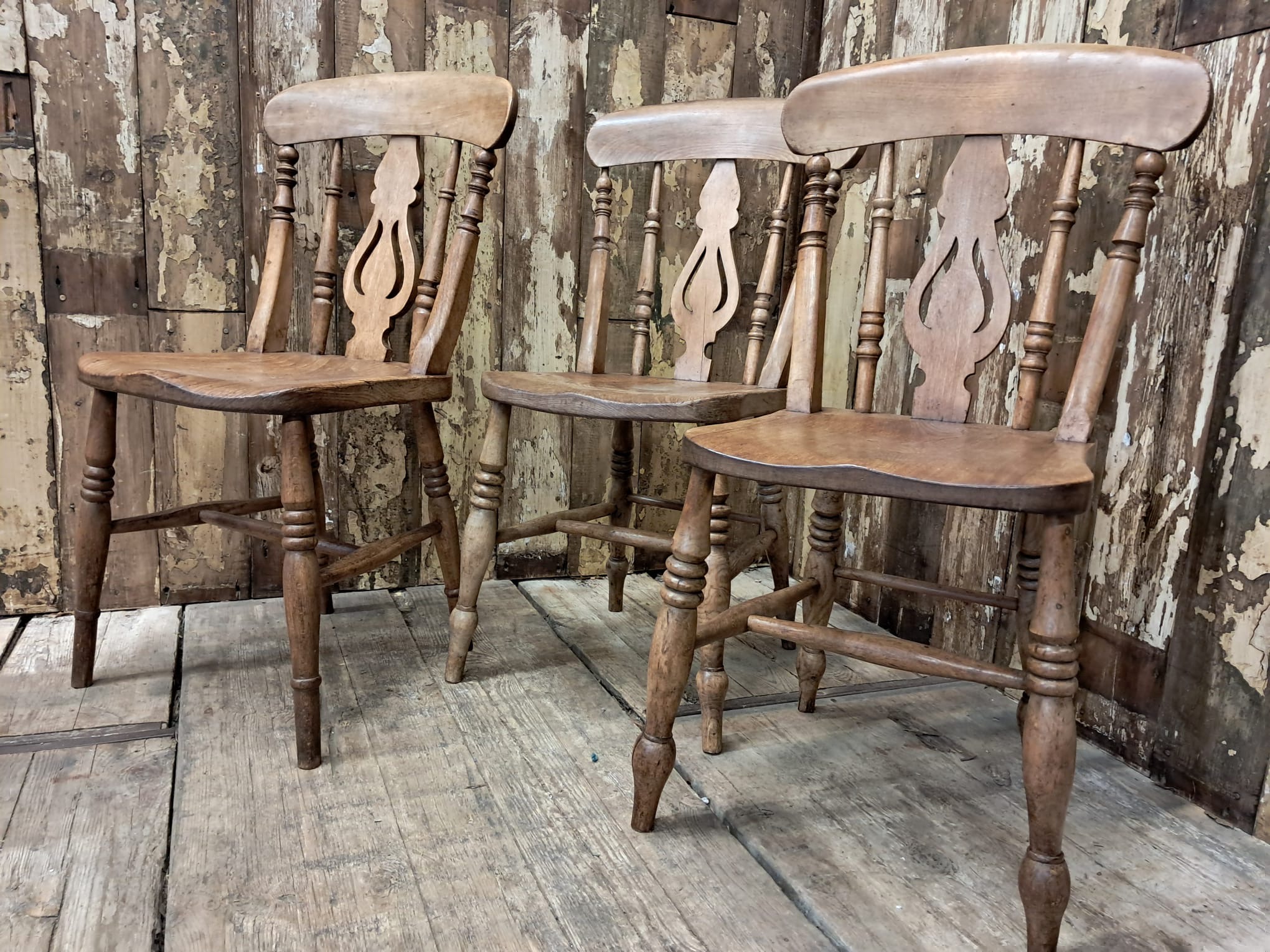 A set of 6 Victorian fiddle back farmhouse kitchen chairs.