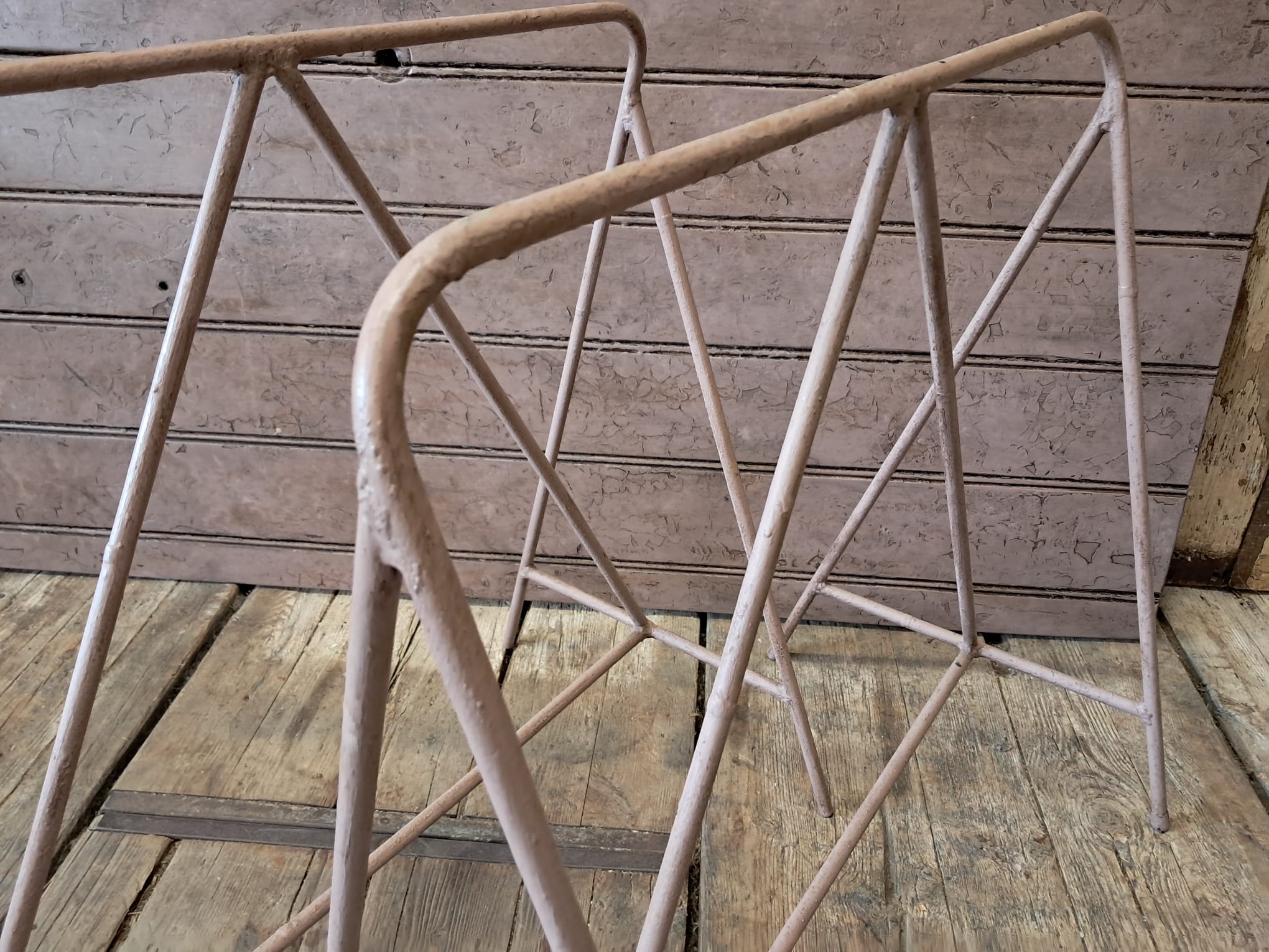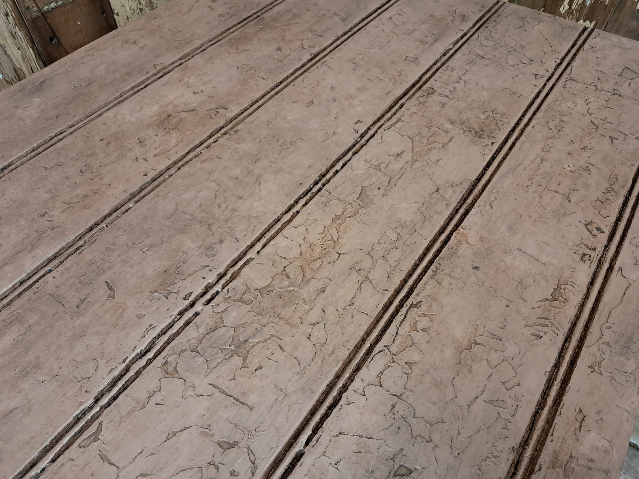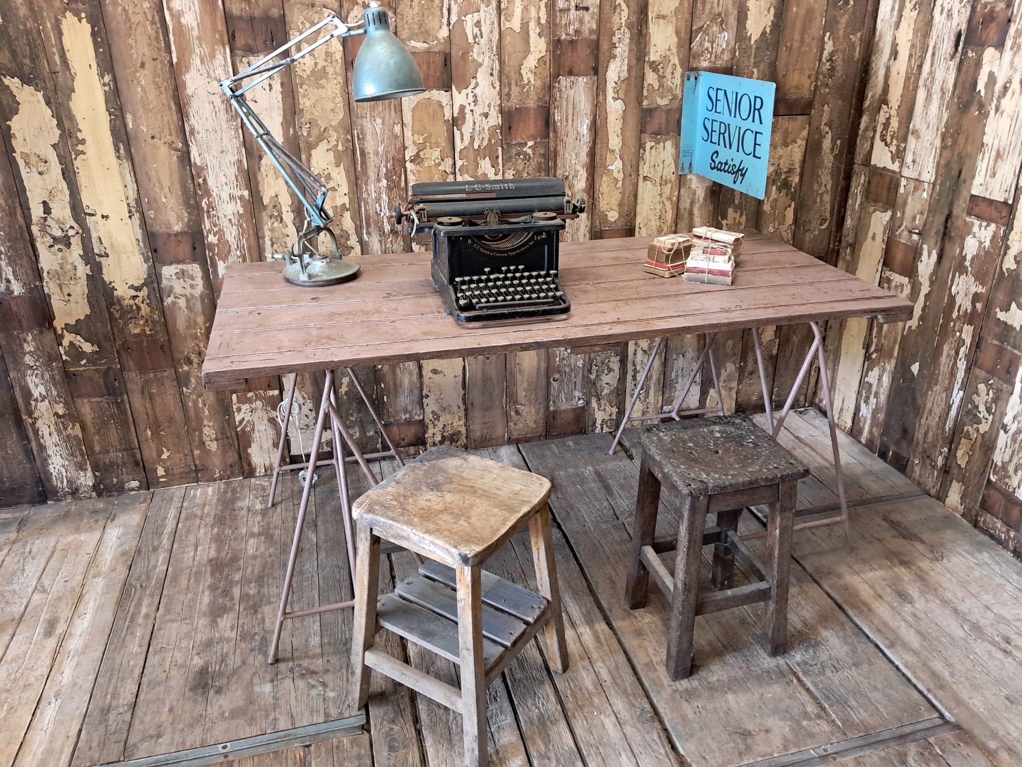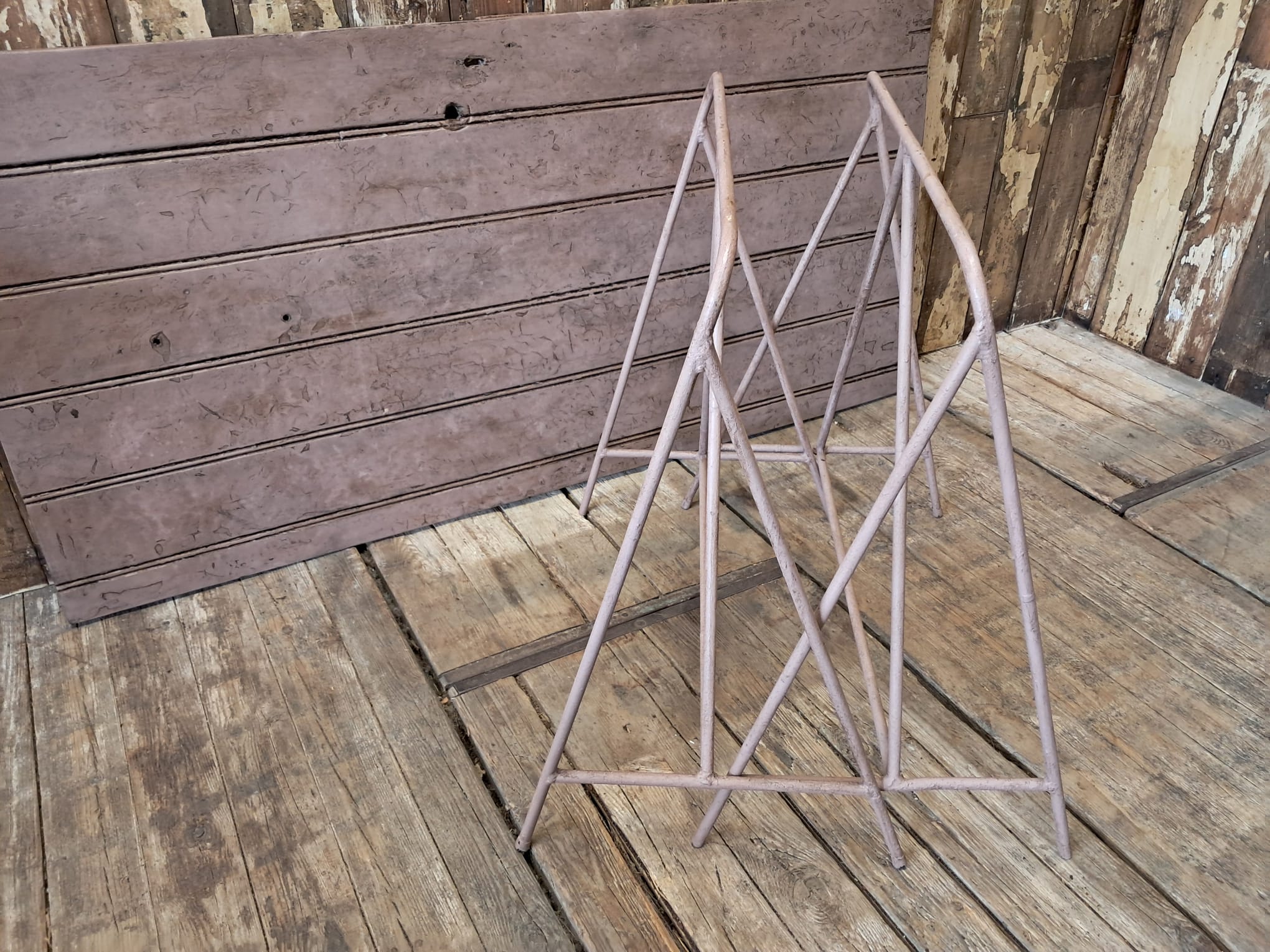 A super trestle table with steel trestle legs and a solid pine, cross braced, recycled door top.