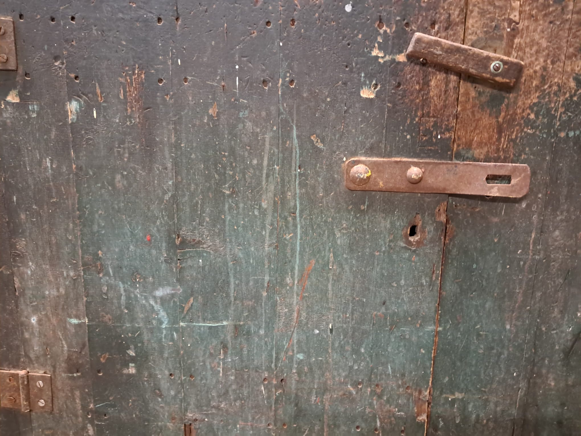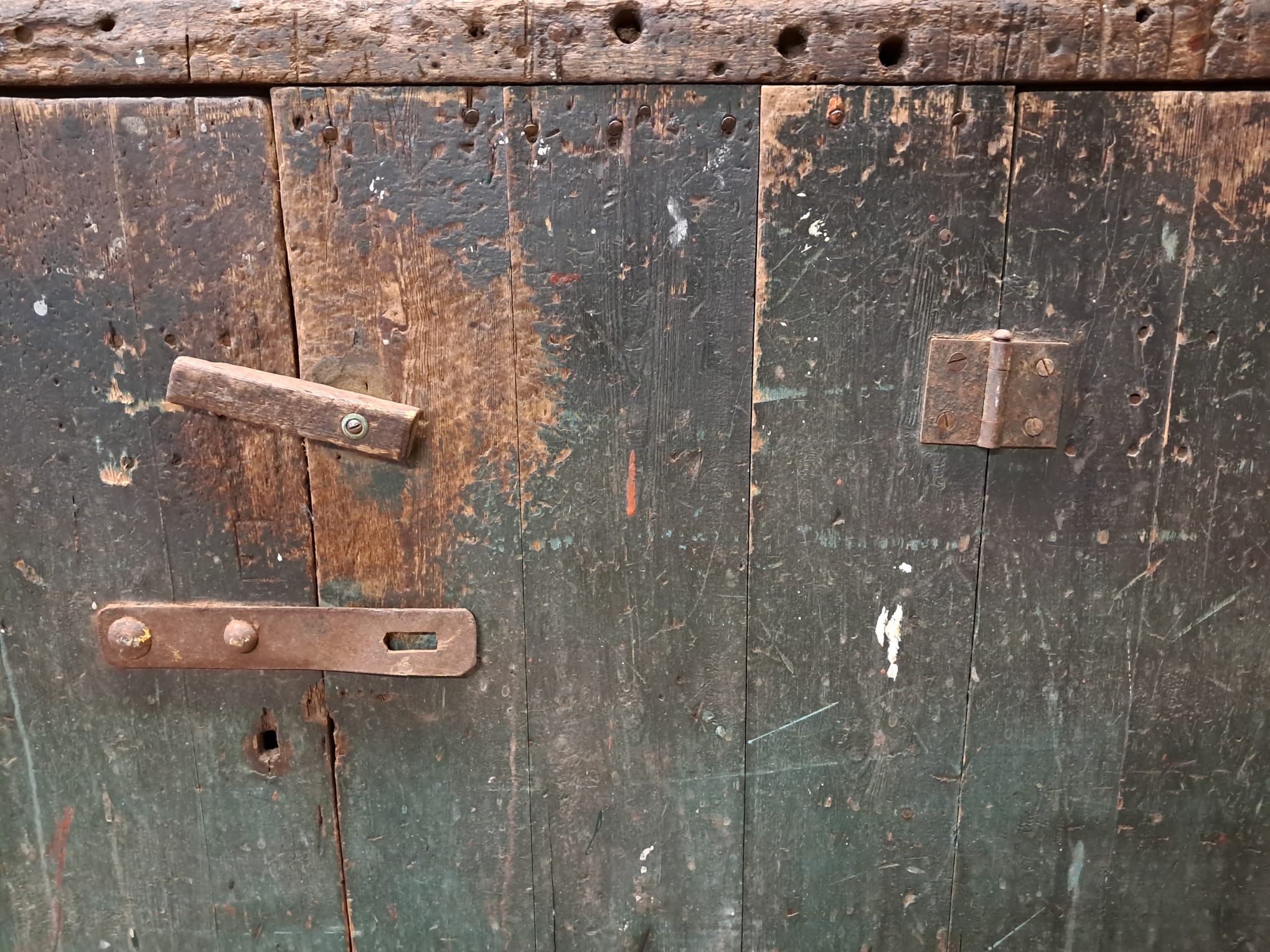 An authentic French piece with its original blue paint, beautifully worn, battered and weathered.