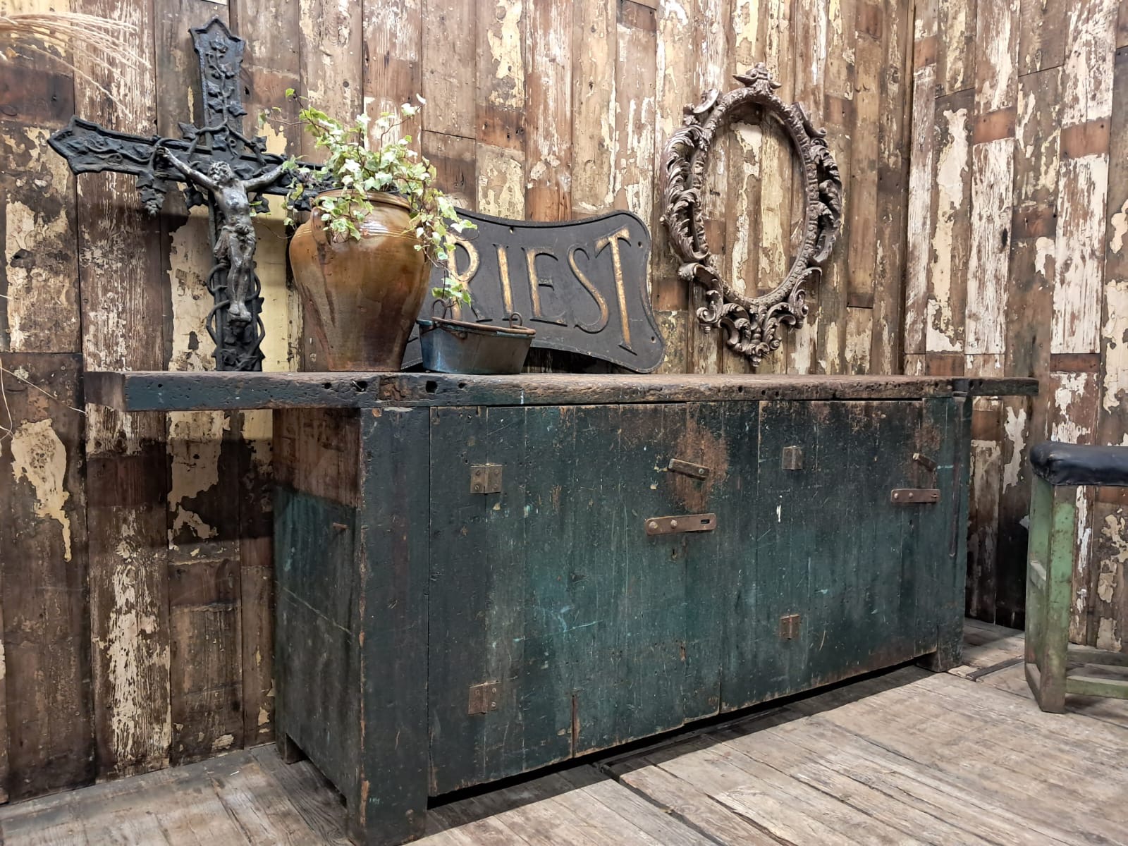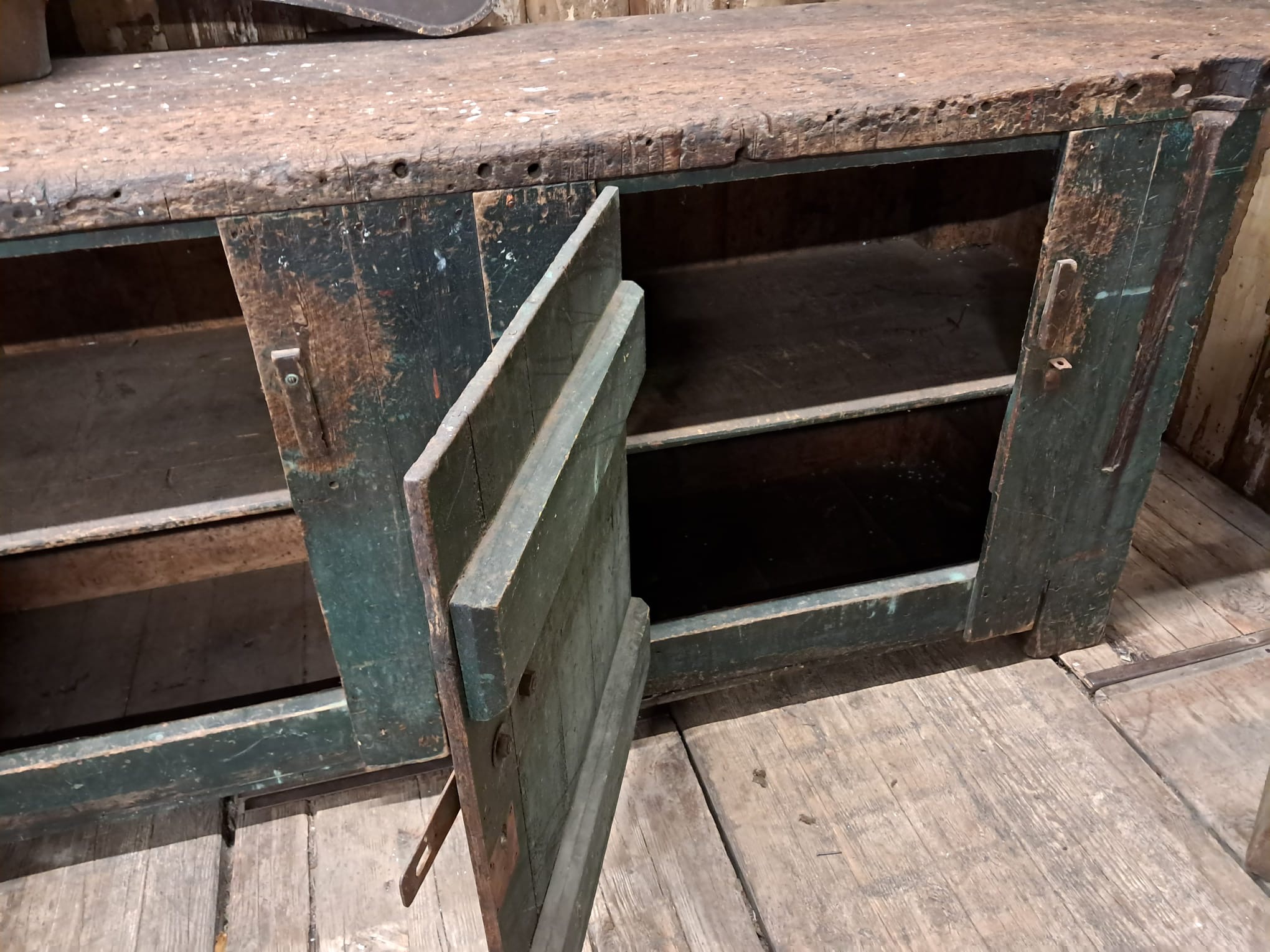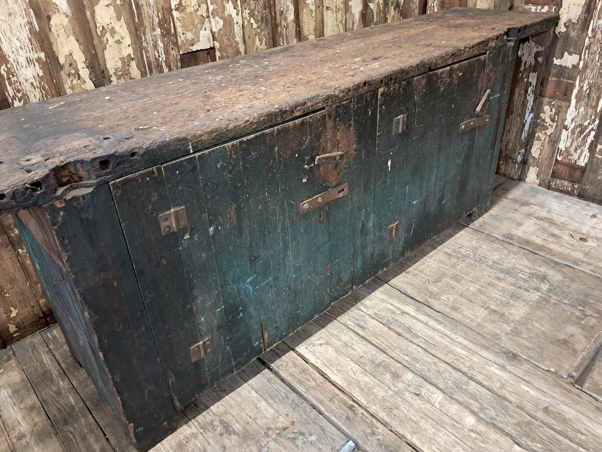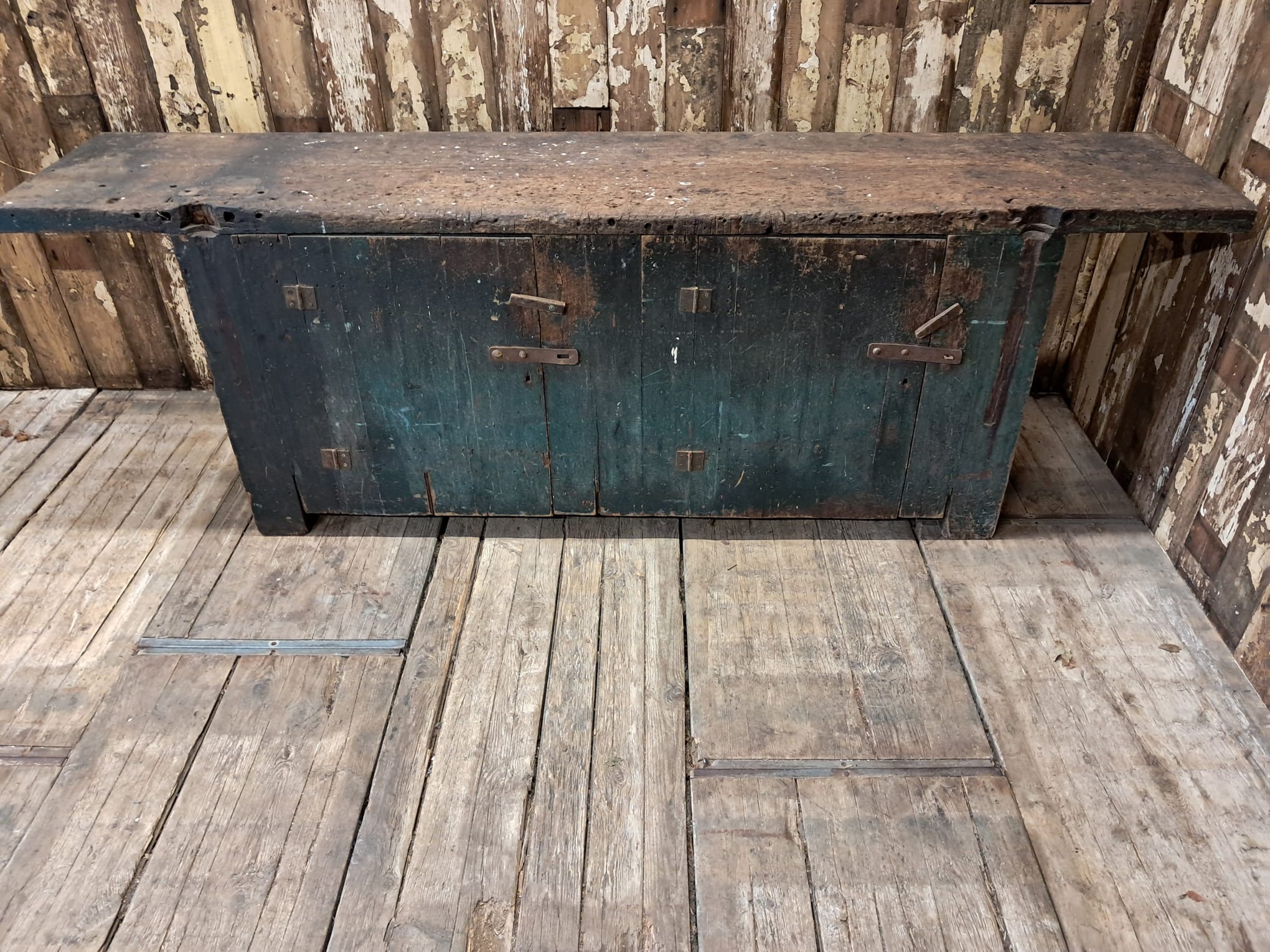 A large Victorian painted workbench unit circa 1900s.
