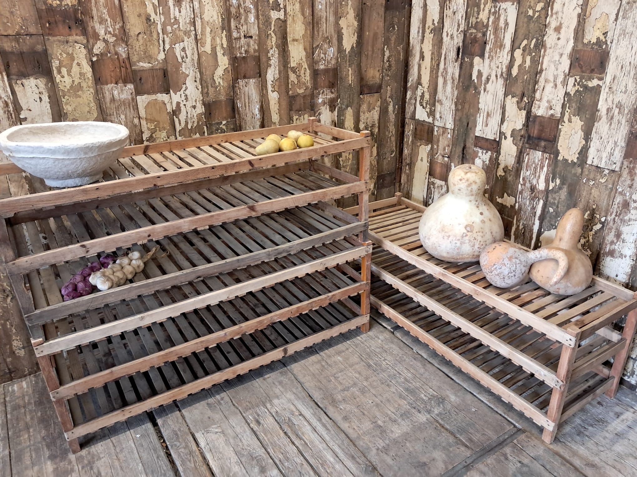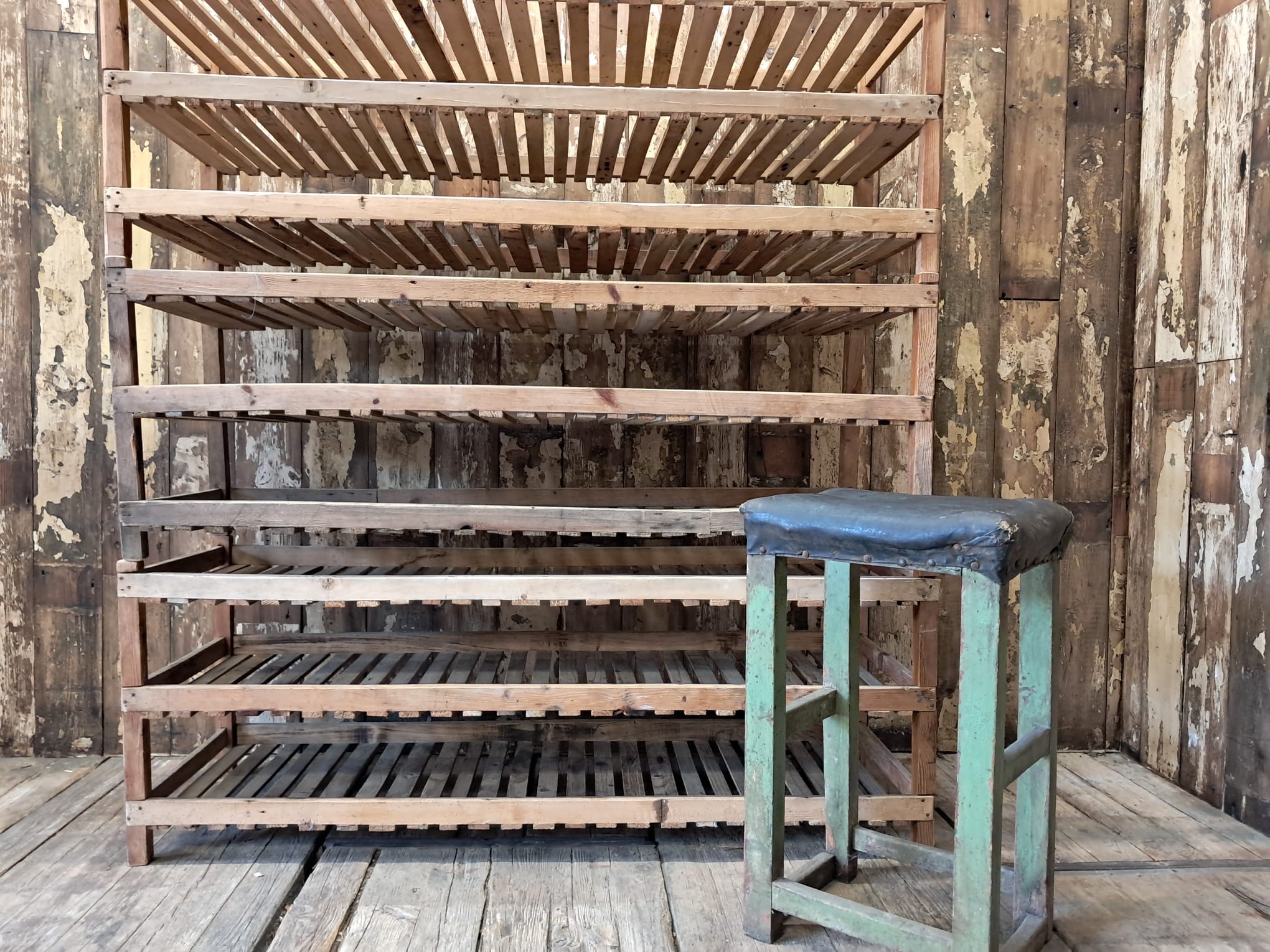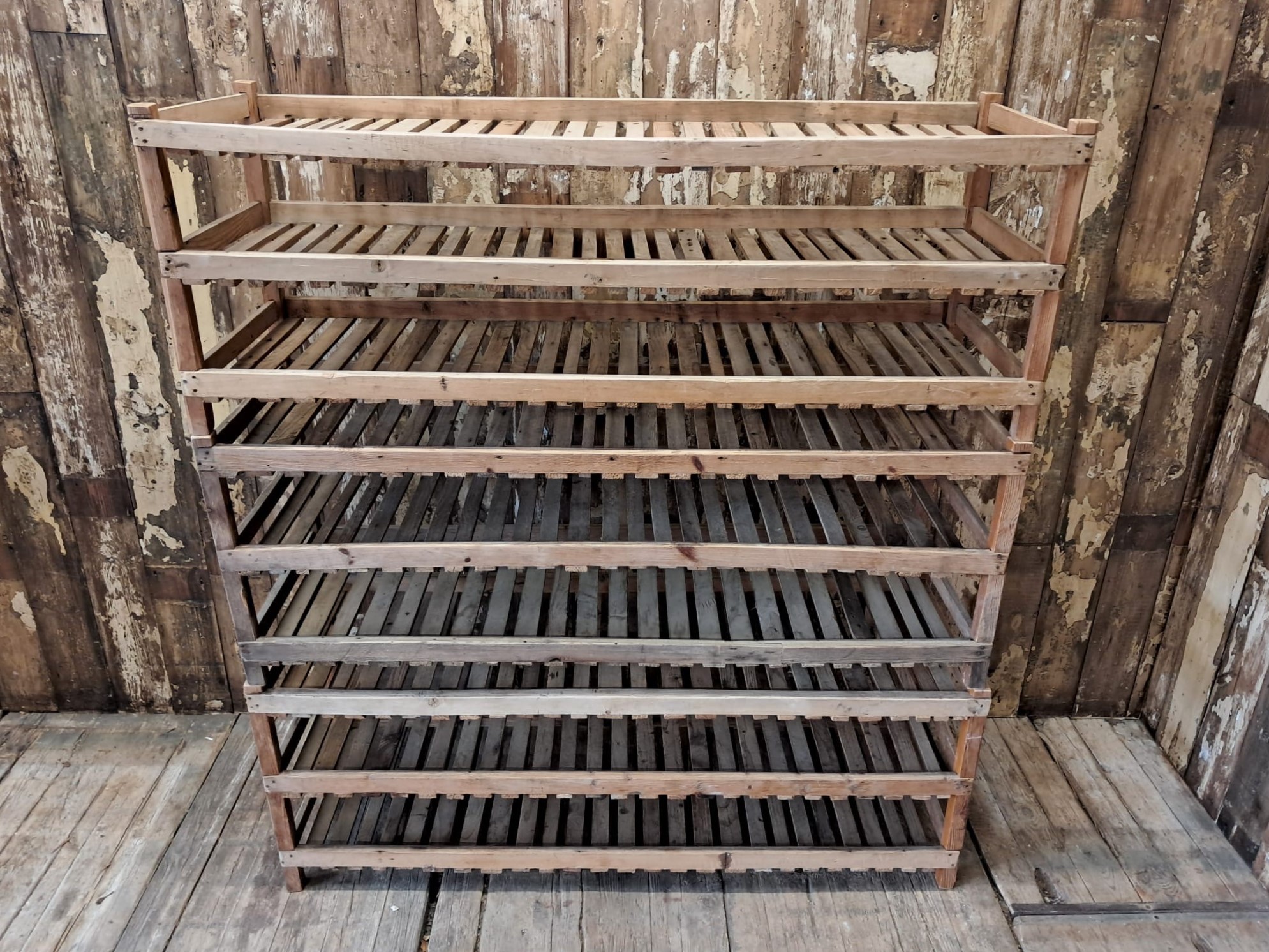 Each original raw pine rack has 3 slatted trays, providing plenty of lovely rustic storage, or display space.