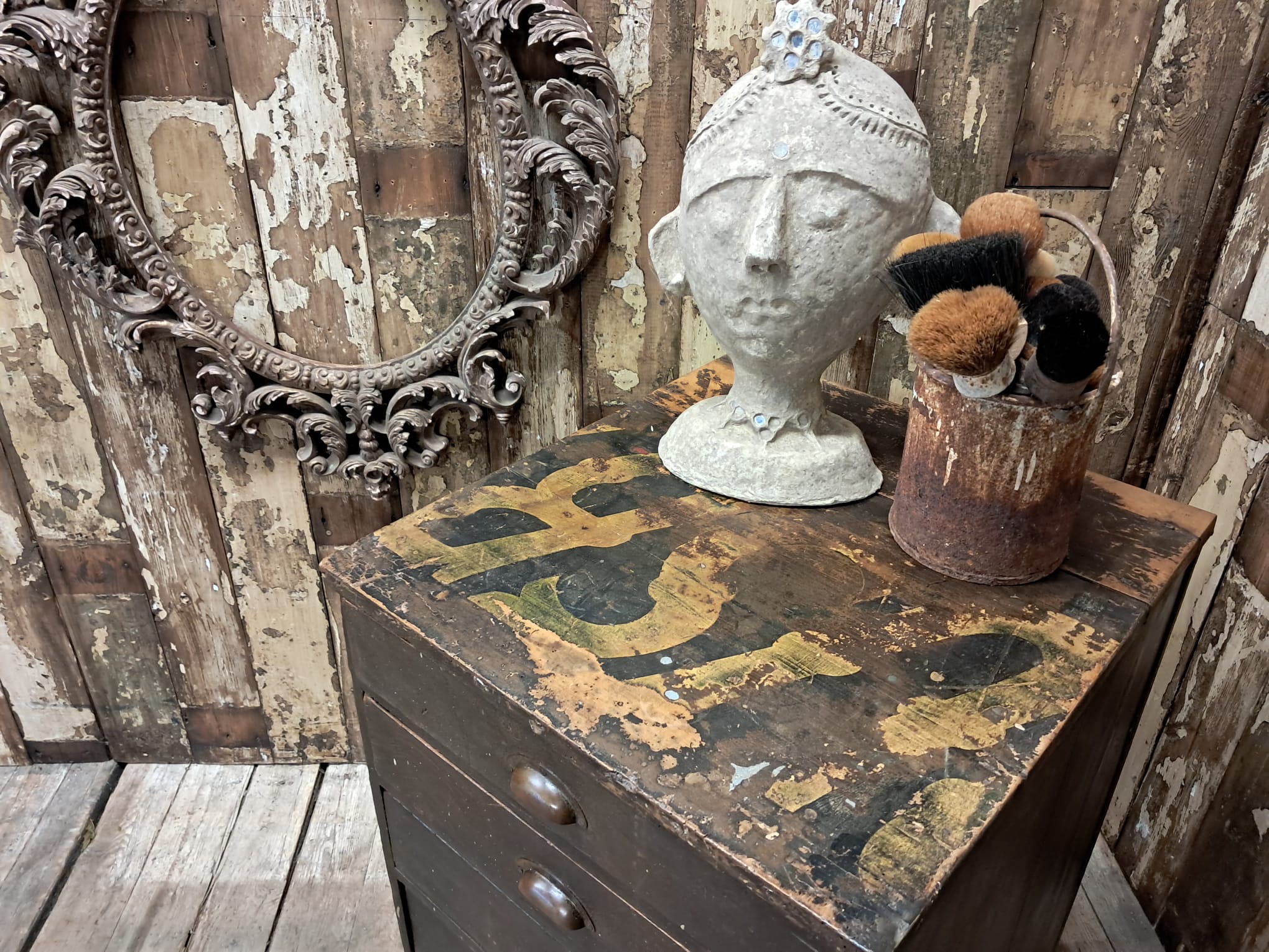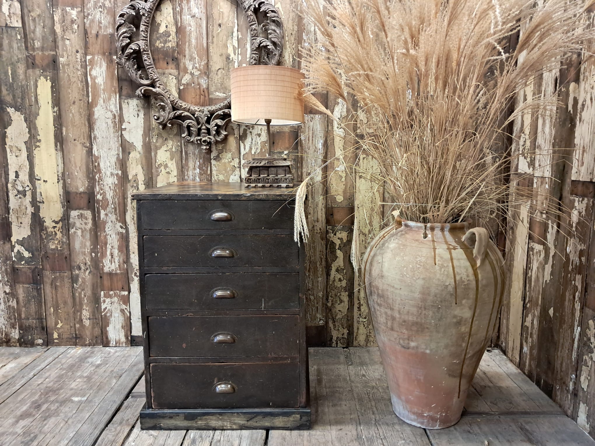 A gorgeous rich dark brown with dragged markings of beige and gold print on the top.